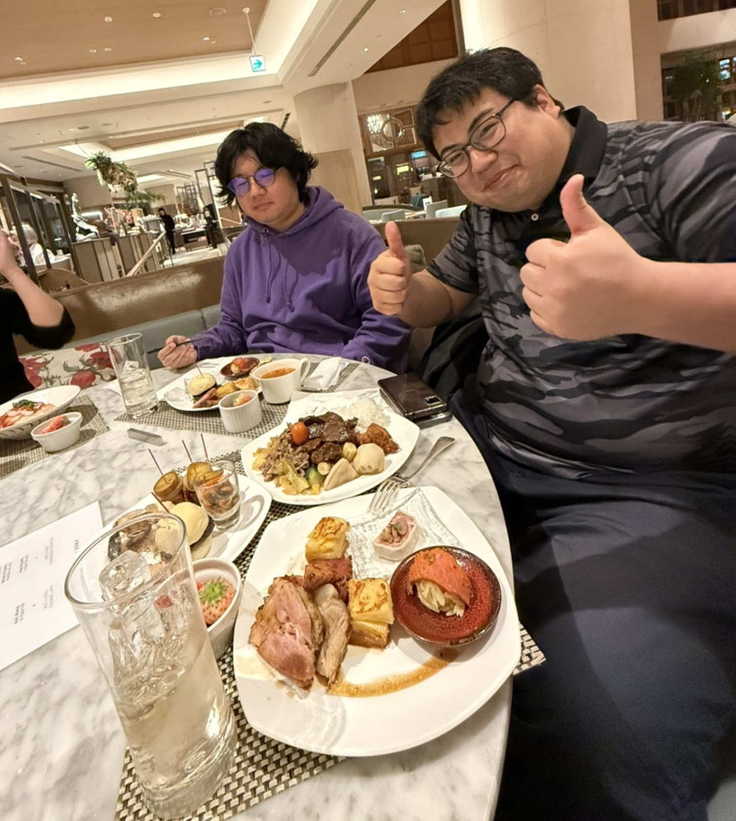 ↓大量のご飯の前に幸せそうな景太郎さんと、いつも色々助けてくれるお世話になりまくりな雅也さん🙌🏻