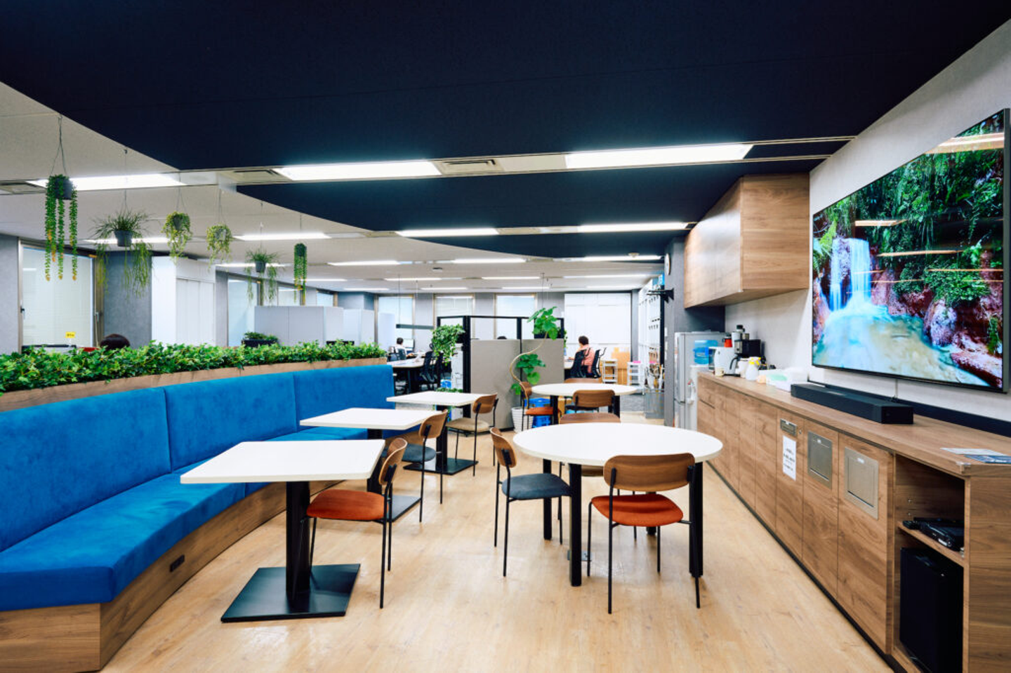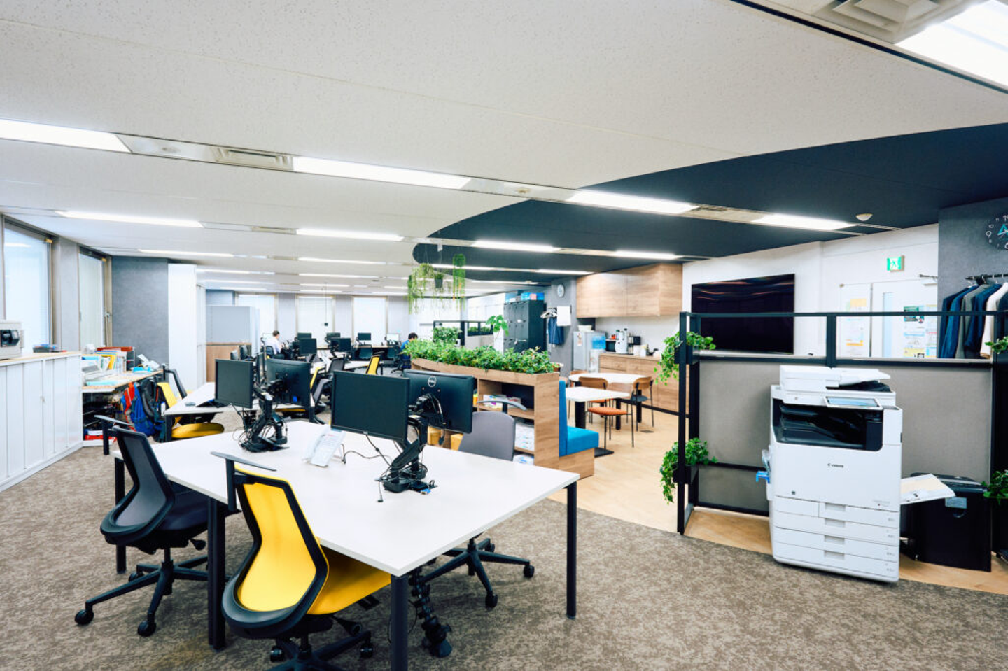 また、執務スペースには壁がなく、フリーアドレスになっているのも、社労士事務所では異例のこと。はじめは懐疑的でしたが、自然に不要な書類を減らしたり、社内のいろいろな人と話すようになったりして、オフィス環境がいい職場づくりに大きく寄与していると確信しています。