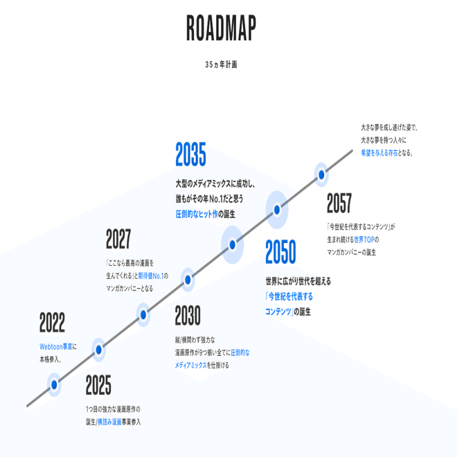 あの瞬間、「この計画は机上の空論ではない」と確信しました。2057年に、今世紀を代表するコンテンツを生み出し続けるマンガカンパニーになる。
