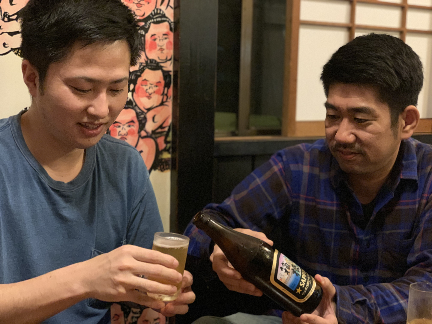 ⬇️CAの鈴木(左)と取締役の岩渕(右)が仲良く晩酌しているところです笑