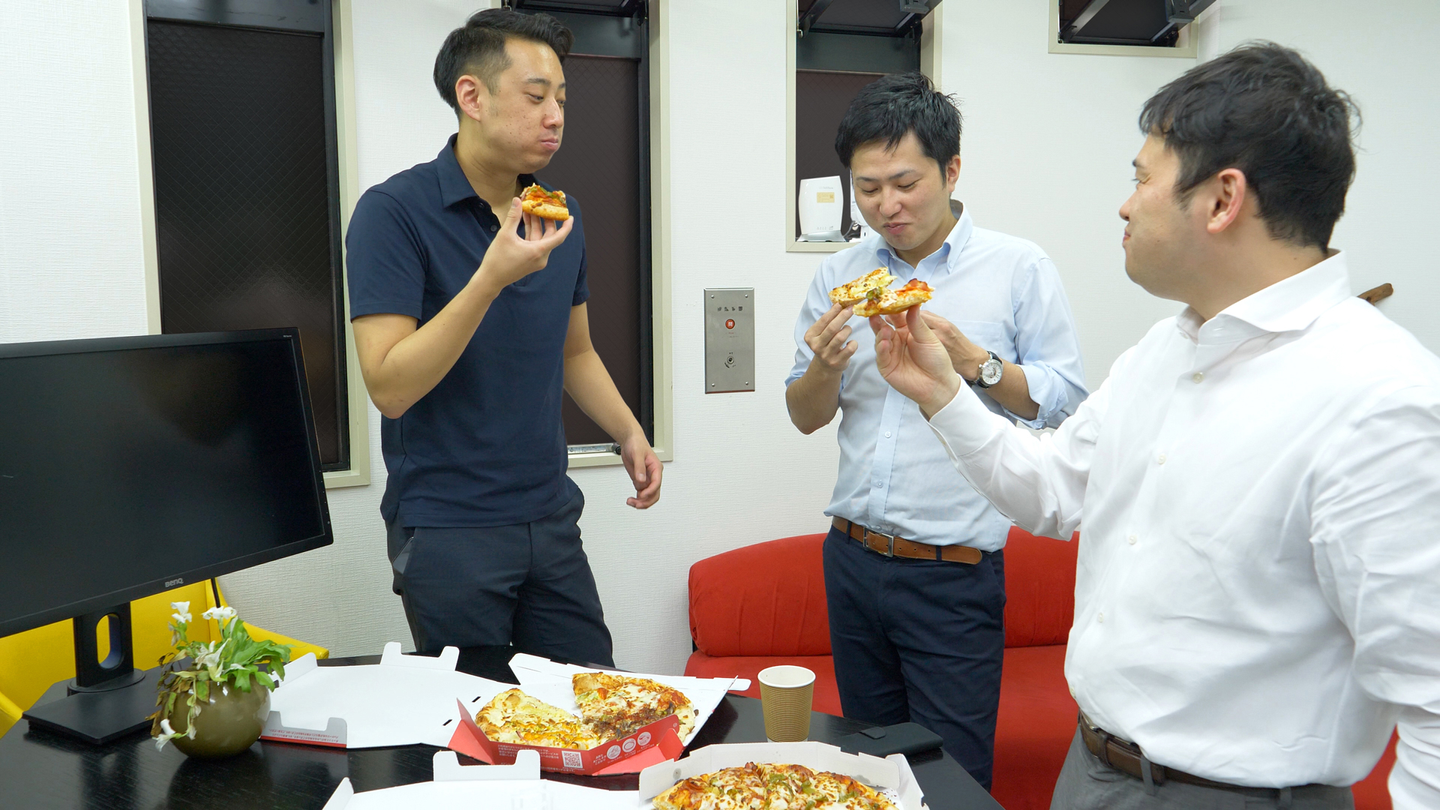 19:30~20:00 夜食 この日はたまたまピザを注文して他の社員と食べました。