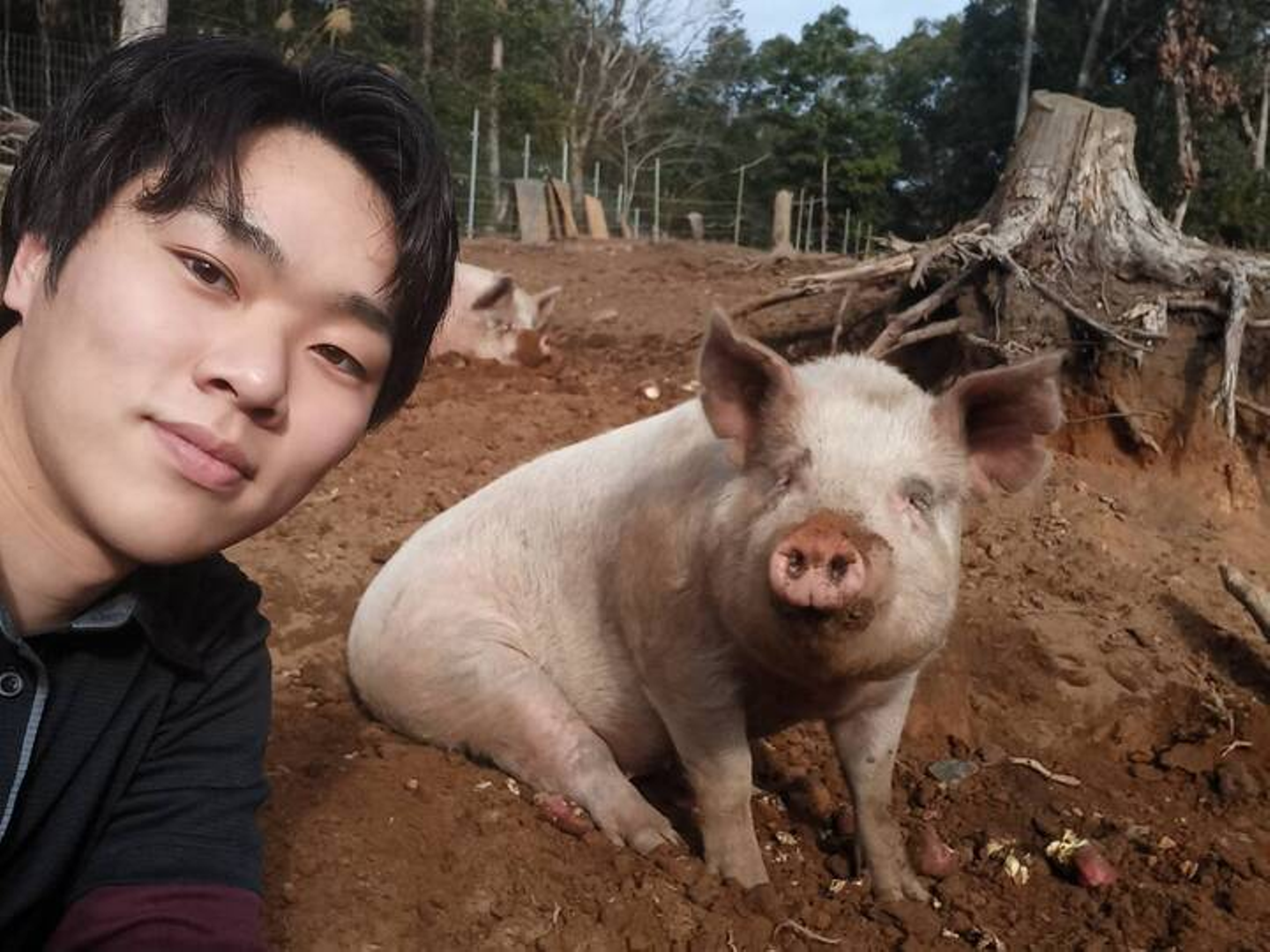 個人的にお気に入りはぶたさんとの写真です、かわいいですね、ぶたさん