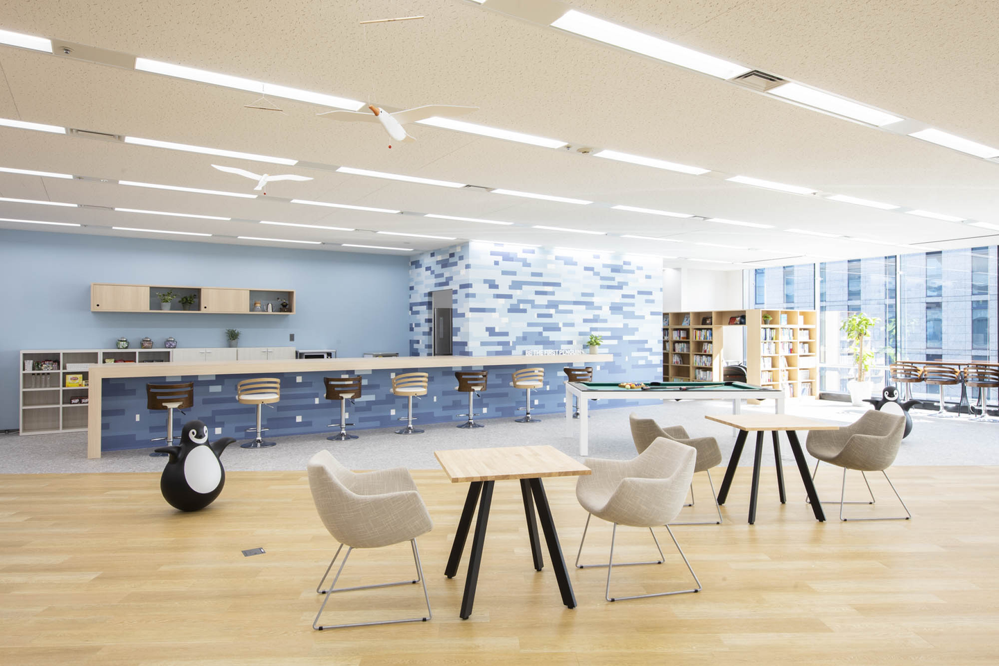 社員が明るく、楽しく、ゆったりできるような空間を目指してデザインしてもらいました。