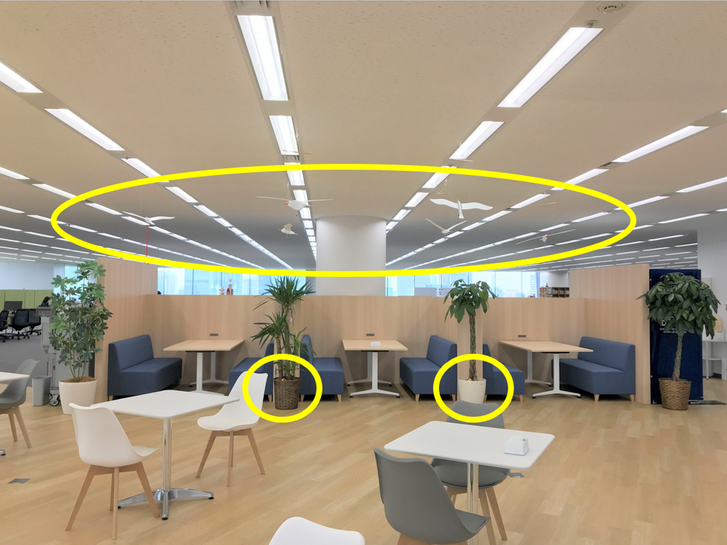 こちらの写真は、リフレッシュルーム中央から見た風景です。
