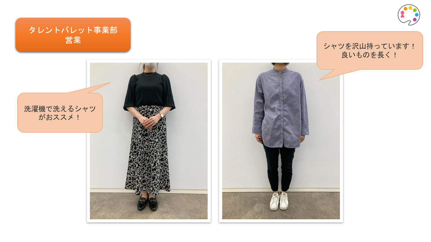 服選びのポイントとしては、「洗濯機で洗えるシャツ」や「シャツは複数枚持っていると良い!」など、お二人ともシャツの着回しをポイントとされていました!