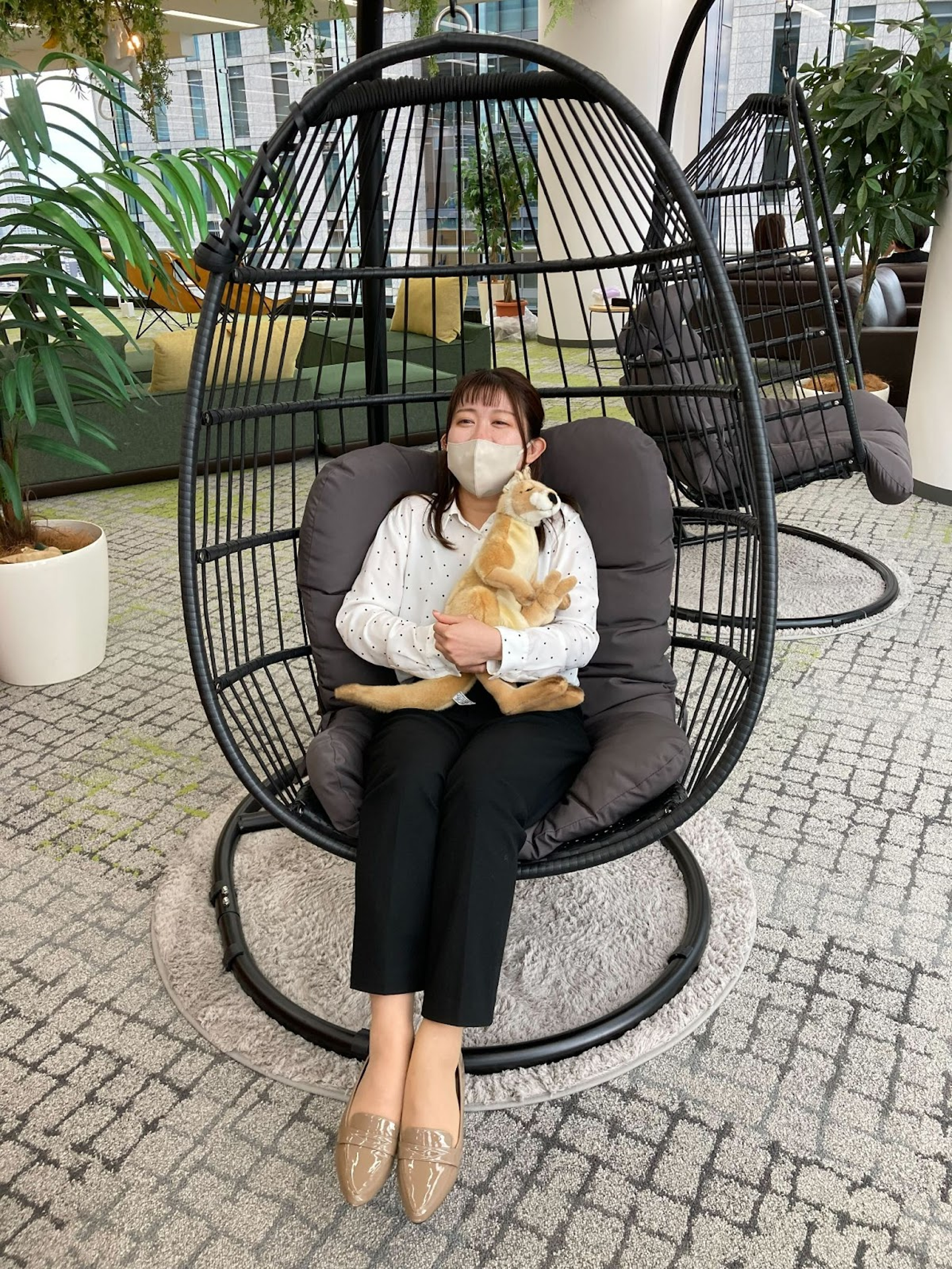 【リフレスペースにあるゆりかごで戯れている3人(後輩が遊ばれているような、、、)】