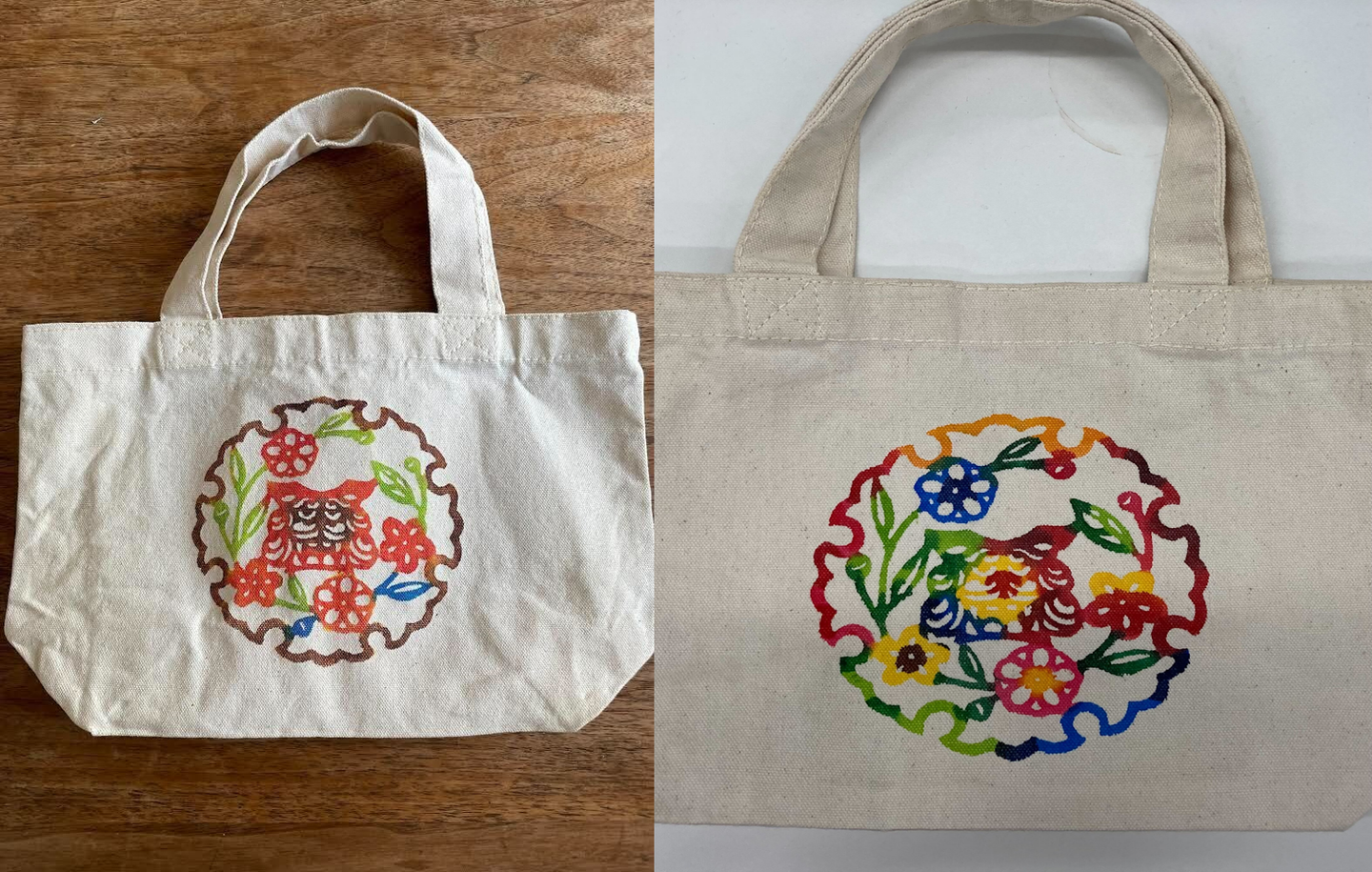 今回私たちはシーサーが描かれているトートバッグに、自分の好きな色を塗ってオリジナルトートバッグを作成しました!