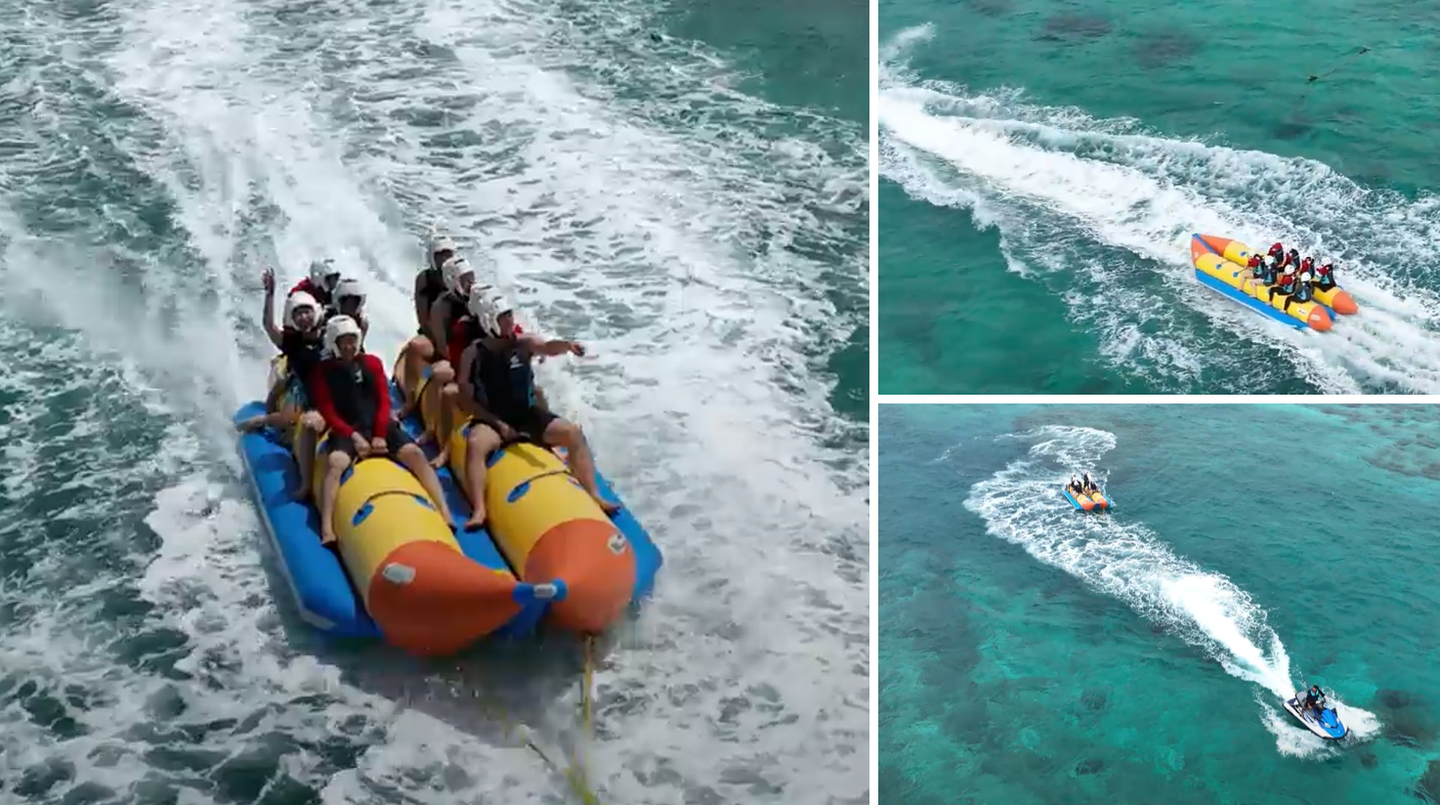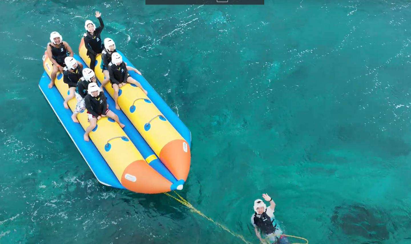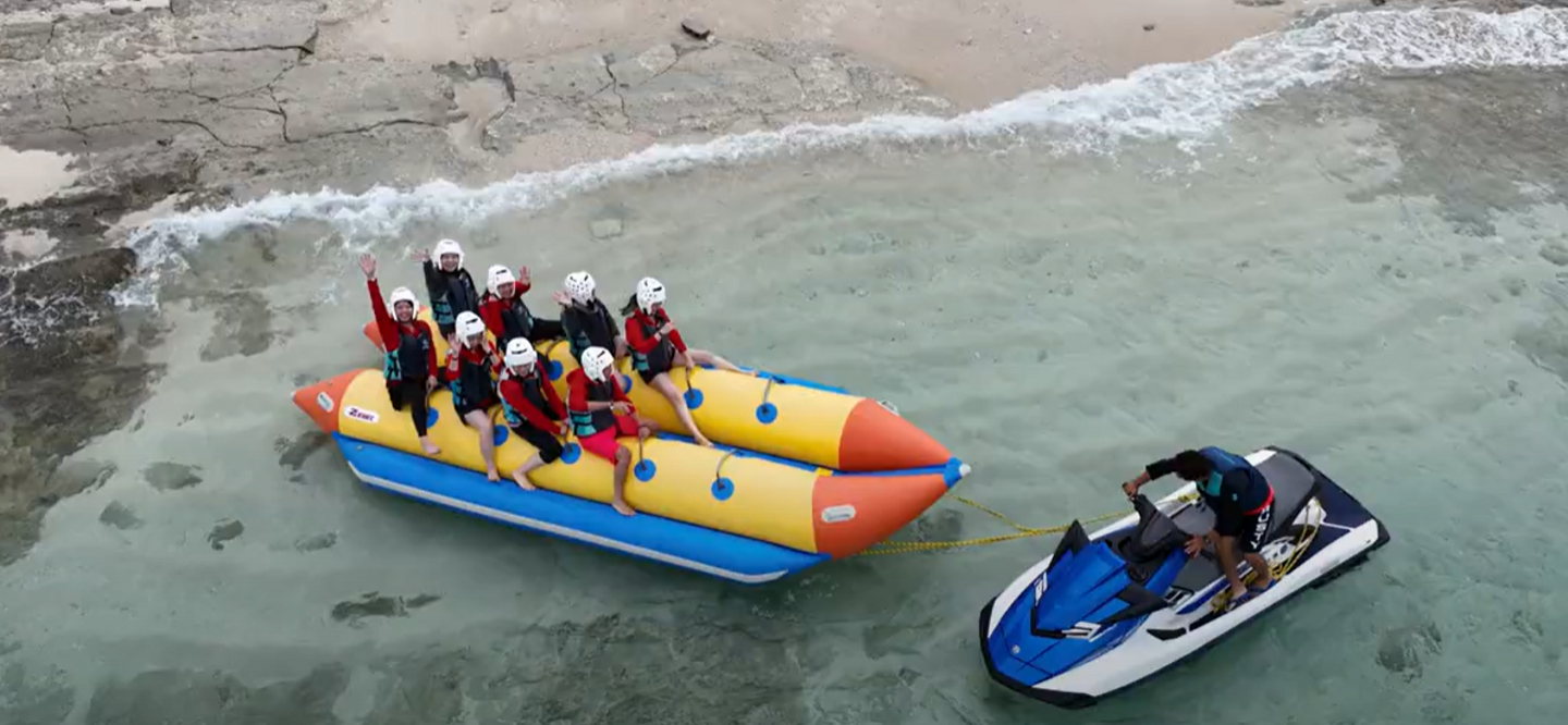 別の班ではバナナボートならぬドラゴンボートというマリンスポーツも体験しました!!