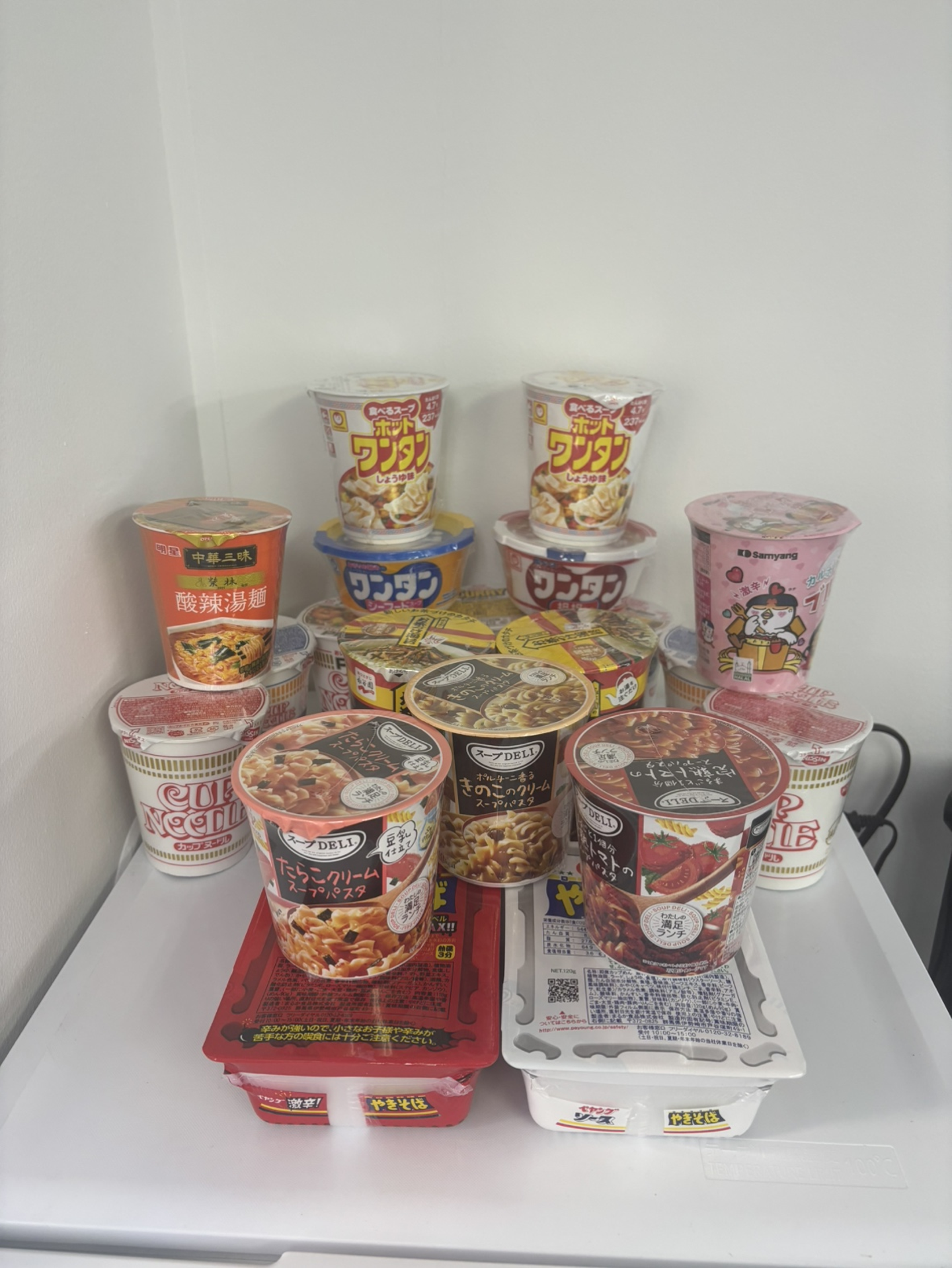 ちなみにオフィスの冷蔵庫の上にはなぜかカップ麺が山積みに…!