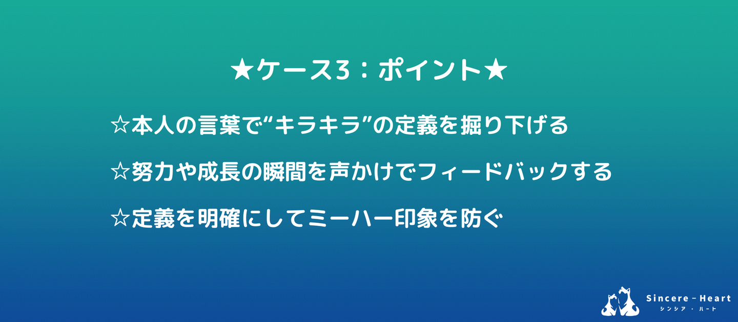 A.本人の使う言葉に合わせながら、“キラキラ”の定義を掘り下げる。