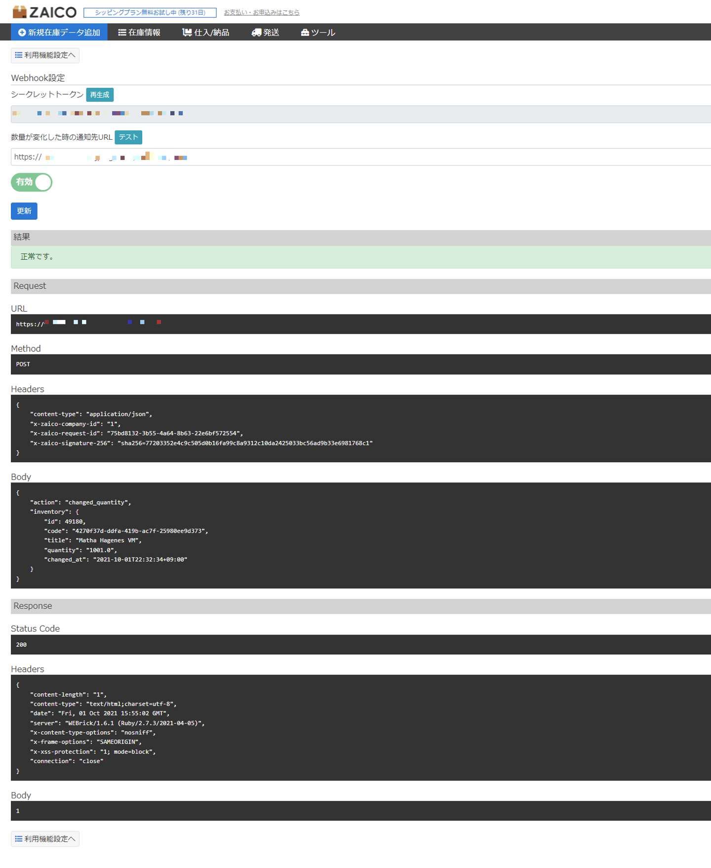 zaico内の設定画面でレスポンスが正常かどうかをその場で判断できるシミュレータも今回実装しました。