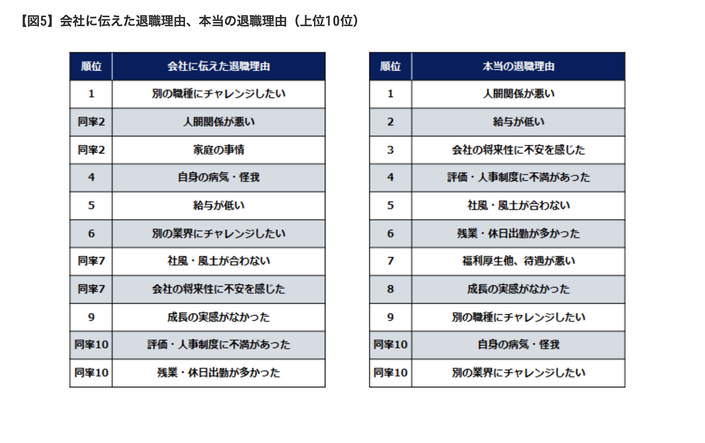 この回答、「あるあるでしょ?」と思われるかも知れませんが、下記のデータを見てみてもわかるように、実は、転職理由の上位に入るほど職場内での人間関係の築き方が難しいとされています。