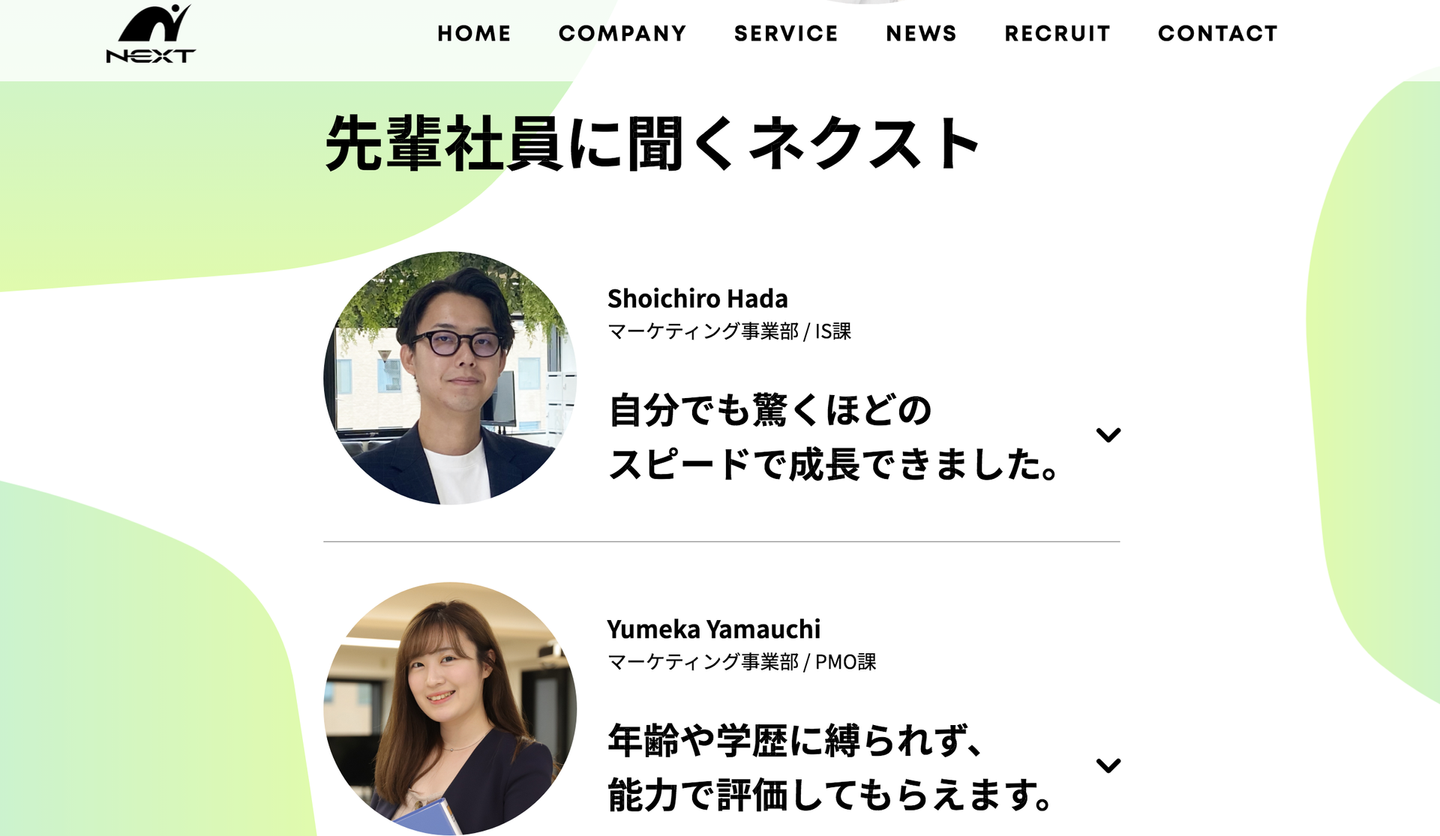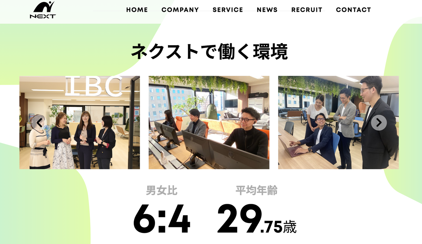 新HPでは代表の「候補者の方によりネクストについて知ってほしい」という想いを込めて、ネクストで働く社員の写真や情報をたくさん掲載しました!