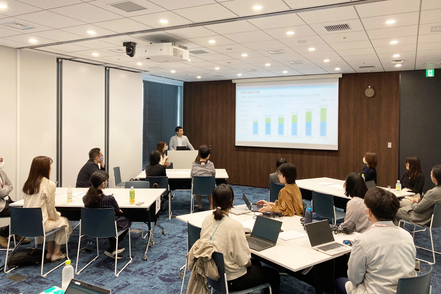 ちなみに、昨年まではコロナの影響で完全オンラインでの開催でしたが、今年から対面に切り変えて開催したんです。普段はお客様先で働いている社員もいるため、久々に会うと会話が弾みましたね!全員が一斉に集まる場だと話しかけづらかったり、タイミングを逃してしまったりすることもあるので、そういった意味では少人数に分けた開催はコミュニケーションが取りやすくて良かったと思います!