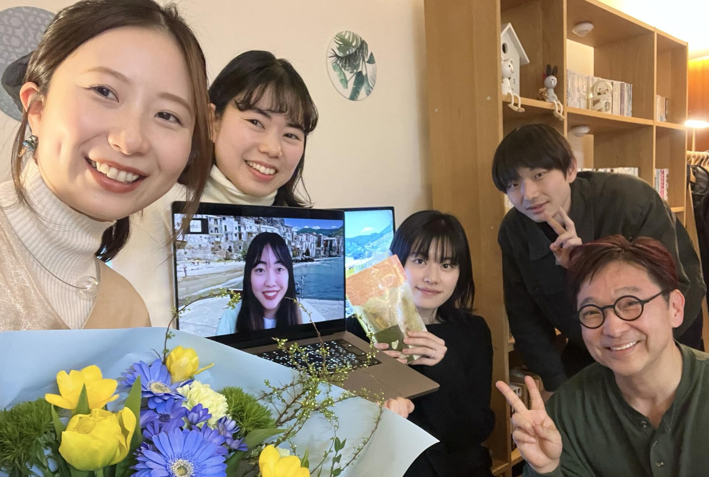 シェアラウンジで顔を合わせて対話する日もあれば、在宅で思いっきり集中する日もある。日々必ず行うのは、ZOOMやslackでコミュニケーションを取り合うこと。小さな気づきや悩みも都度シェアし、相談し、助け合っています。イタリアからフルリモートで働くがさきも、時間と距離が離れているとは全く感じないほど。お互いがお互いの状況をよく理解し合っているからこそ、チームとして価値創造に熱中することができます。