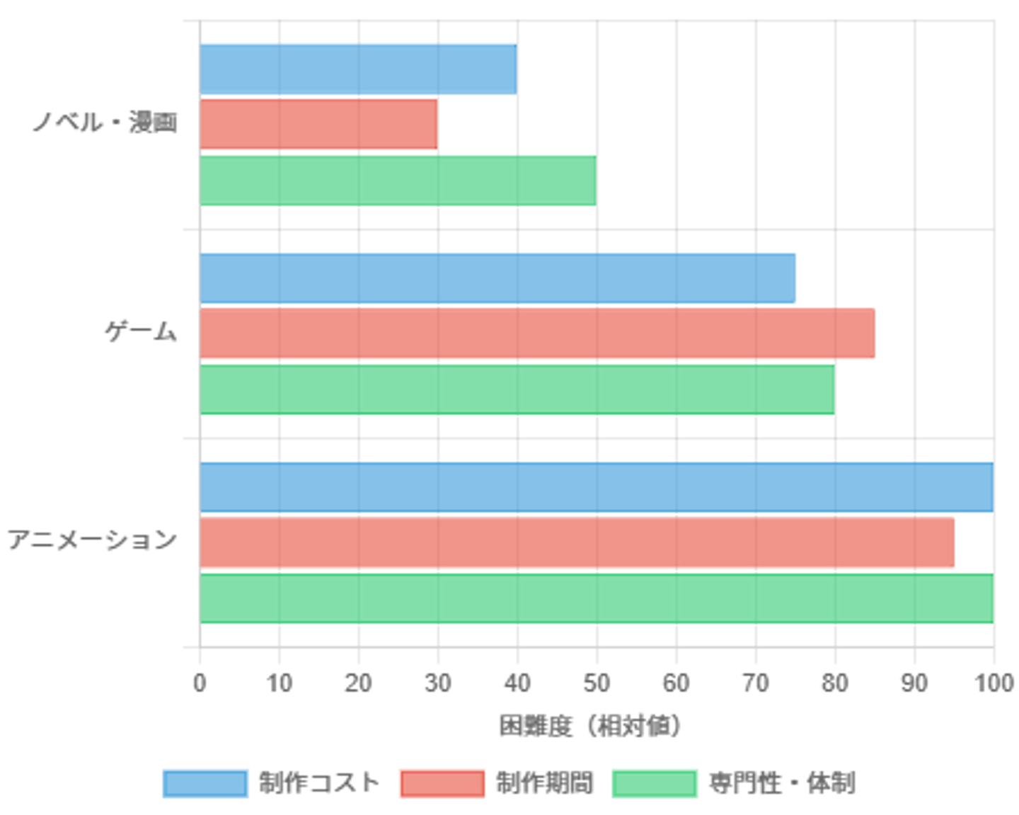 IP展開における各メディアの制作ハードル(中山氏の体感)