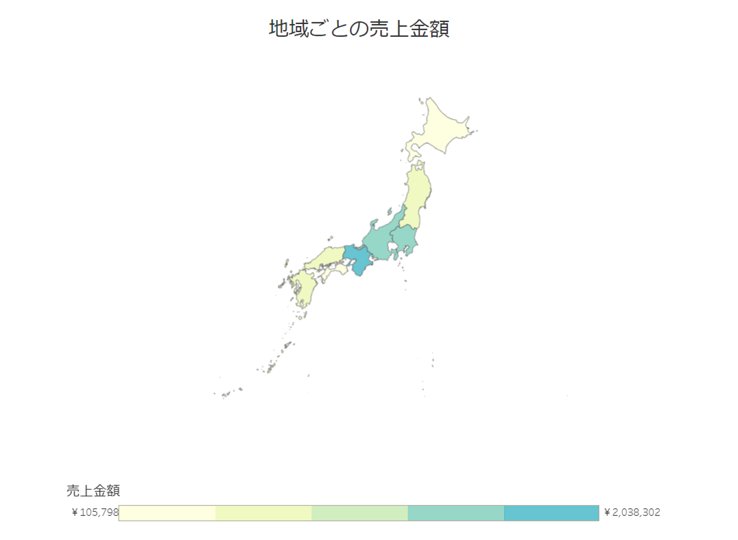 地理的な領域ごとにデータを色やパターンで表現する可視化手法です。地図上に領域ごとのデータの値を反映させ、地域間の差異やパターンを視覚的に把握することができます。主に地理的なデータや地域ごとの比較を行う場合に使用されます。