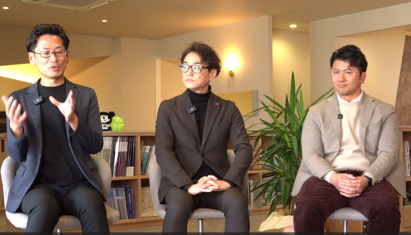 インタビュー動画撮影の様子(左から小木曽室長、國廣取締役、守本MG)