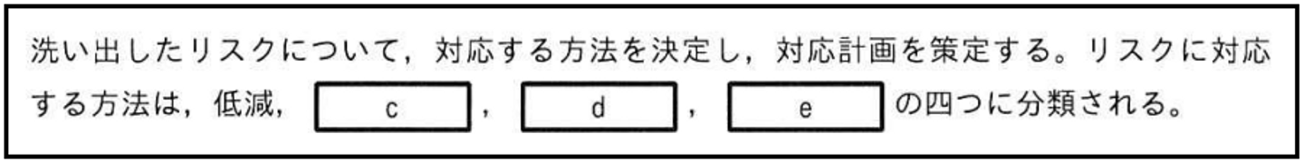 ※空欄c,d,eの答えは、「回避」「移転」「保有」(順不同)でした。