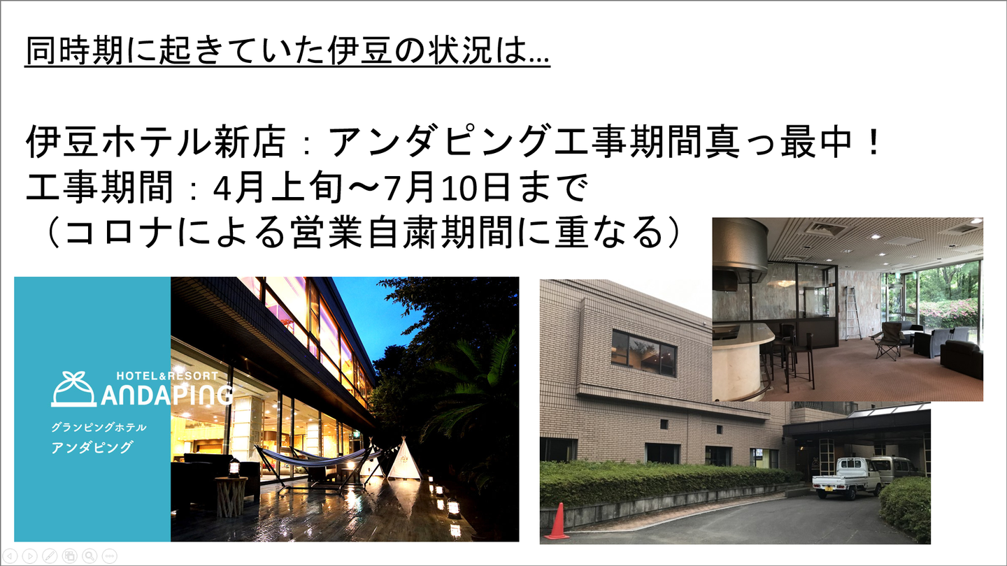 そんな中、アンダグループではグランピングをテーマにした新業態「ホテルアンダピング」や、「アンダの森 離れヴィラスイート」の工事期間の真っ最中でした。
