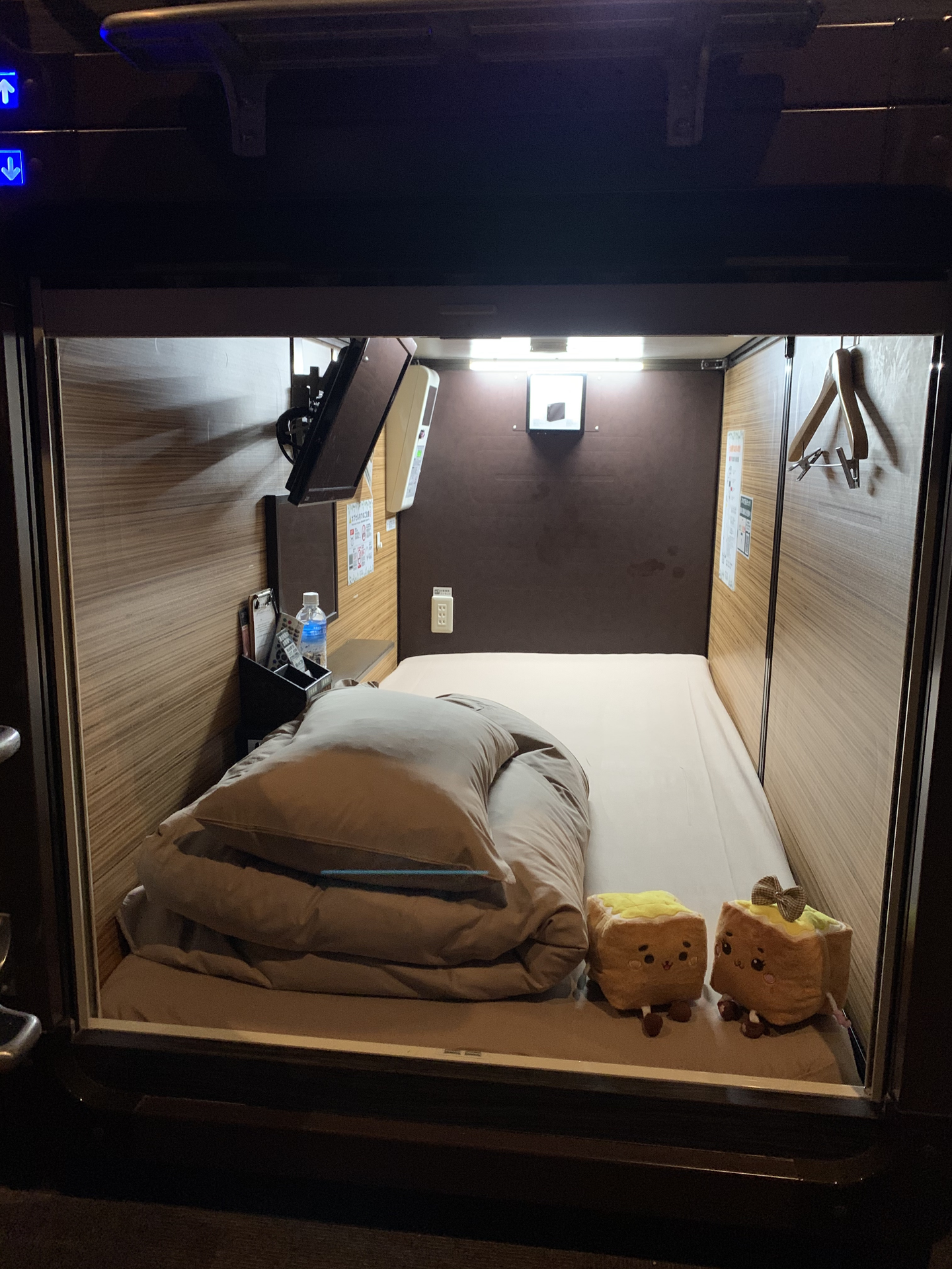 1人で寝るにはちょうど良い空間。写真よりも実際に見た方が、閉塞感はないです。電源などもしっかりあるから、寝る前にiphoneなどをいじる私たちの世代にピッタリ。笑