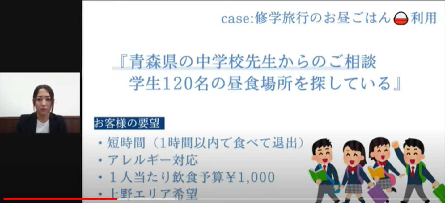 以前、中学校の団体様120名様のランチの場所を探しのご依頼がありました。条件は「予算ひとりあたり1000円、アレルギー対応有、1時間以内で食べ終わるお弁当」というもの。