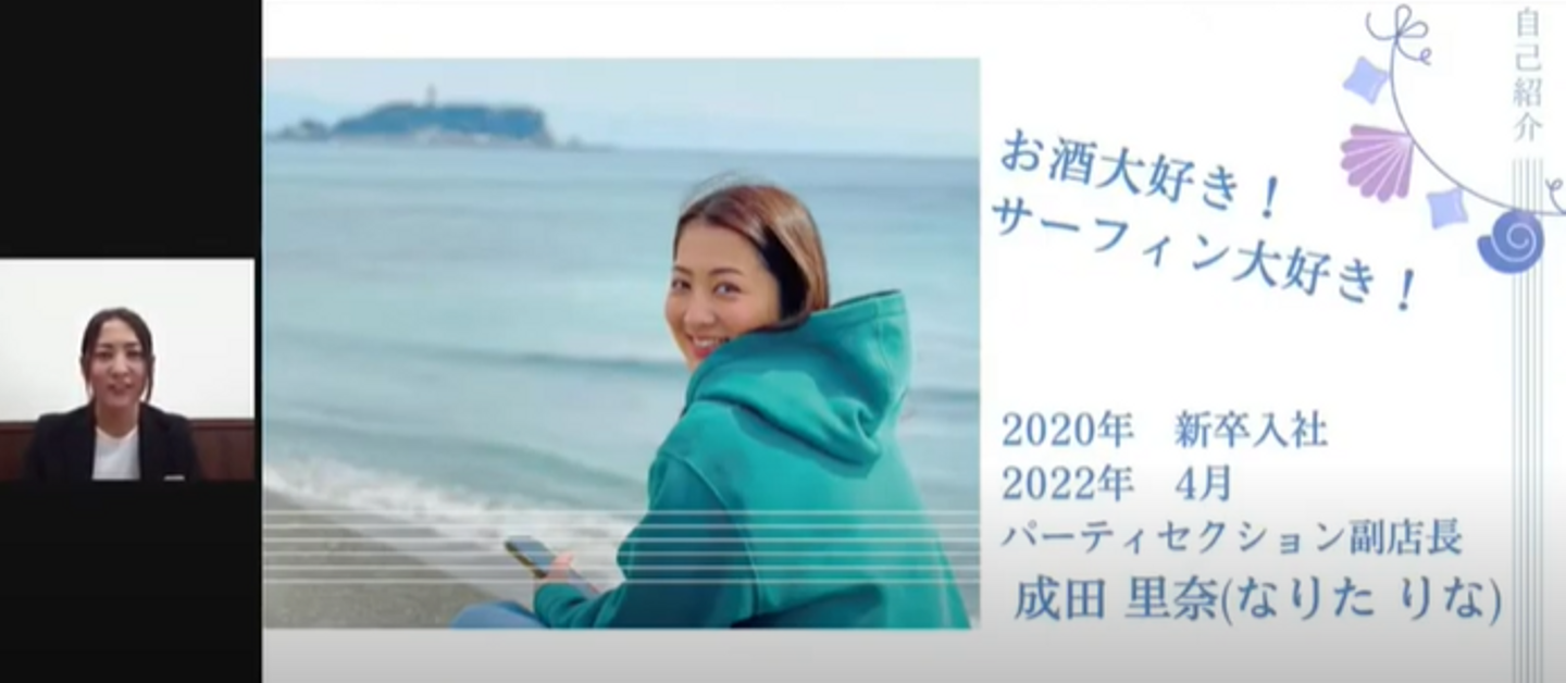 次に紹介するのは、パーティーセクション副店長の成田里奈さん。成田さんは2020年に新卒入社後、アテンダー・パーティープランナーとして、予約電話の対応や打ち合わせ、パーティーの企画・実施を行ってきました。