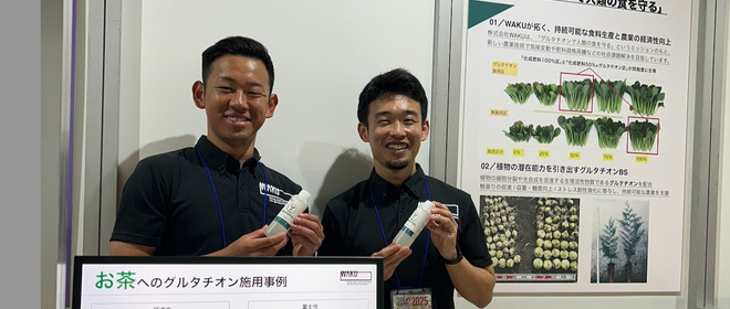 いま、農業はかつてない危機に直面しています。 気候変動による高温・干ばつ・集中豪雨。 国際情勢による肥料価格の高騰と供給不安。 さらに、人口増加によって食料需要は増え続けています。 WAKUは、これらの課題に“科学的根拠に基づいた技術”で挑みます。 3つのアミノ酸からなる抗酸化物質グルタチオンには、 植物の光合成や栄養吸収、ストレス耐性を向上させる力があります。 私たちは、この物質の生理作用を農業に応用することで、 環境に配慮しつつ生産性を高める新しい農業のかたちを提案しています。