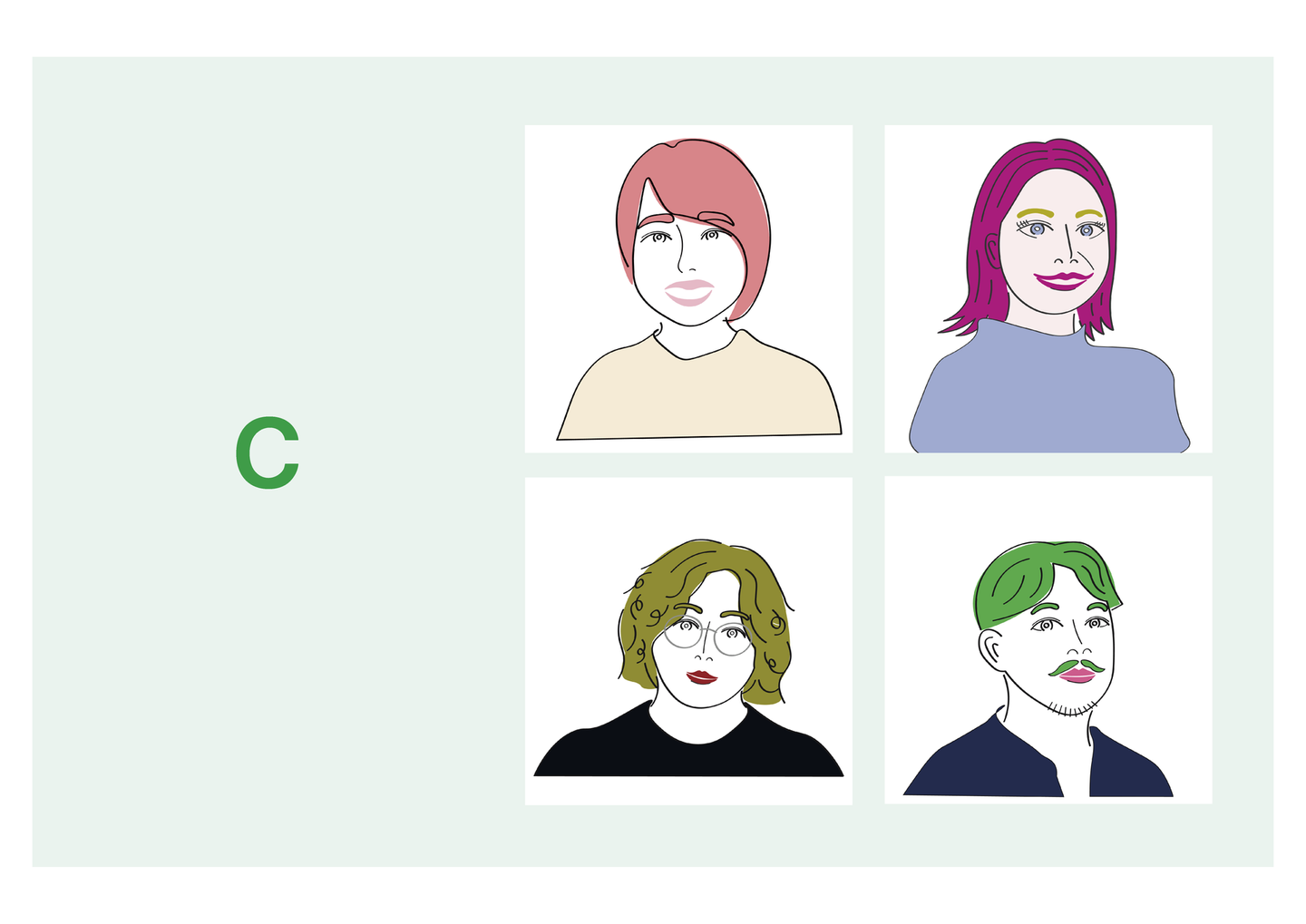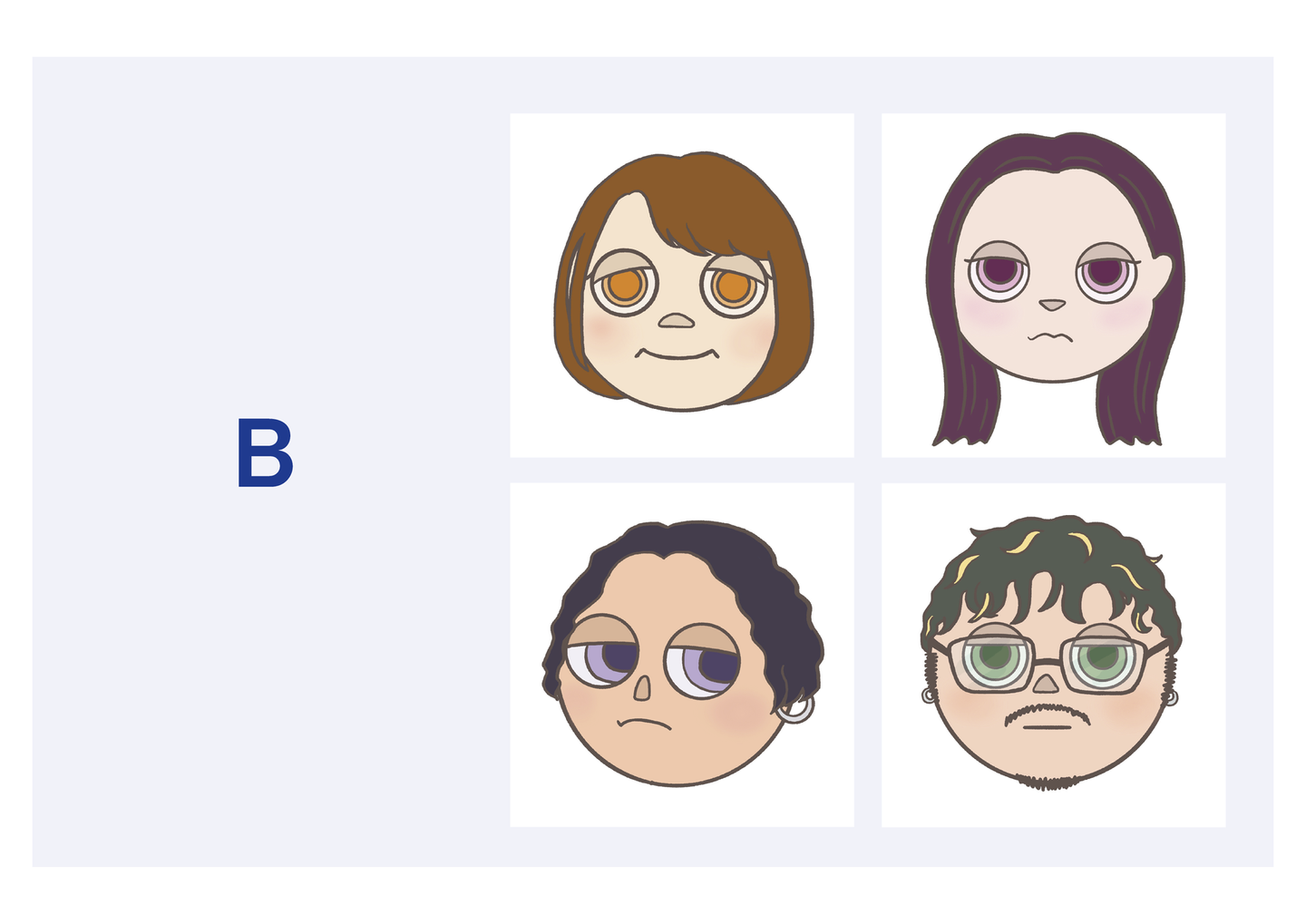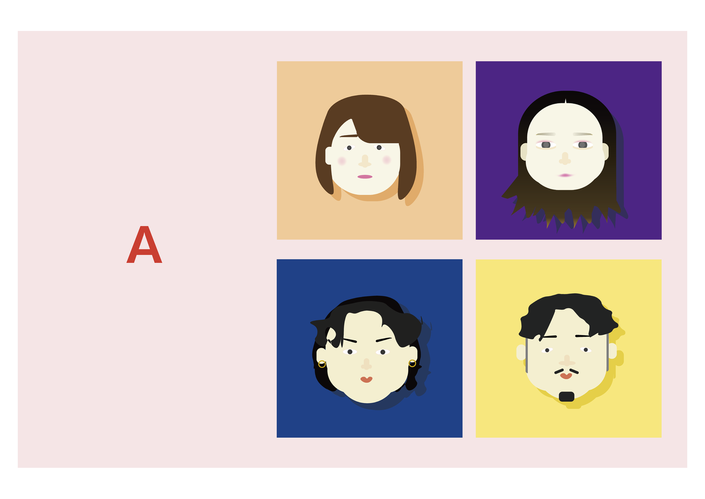 ①デザイナーメンバー3名が、それぞれデザイナーチームの似顔絵アイコンを描く