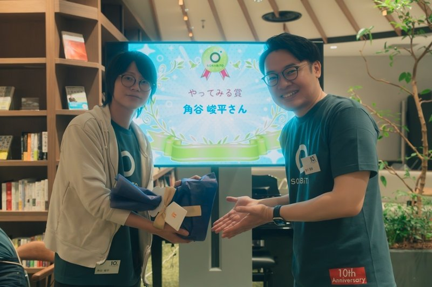 今年3月に入社をしてから日が浅いにも関わらず、メンバーを巻き込みながらSORABITOの10周年イベントをやりきったということで、、、