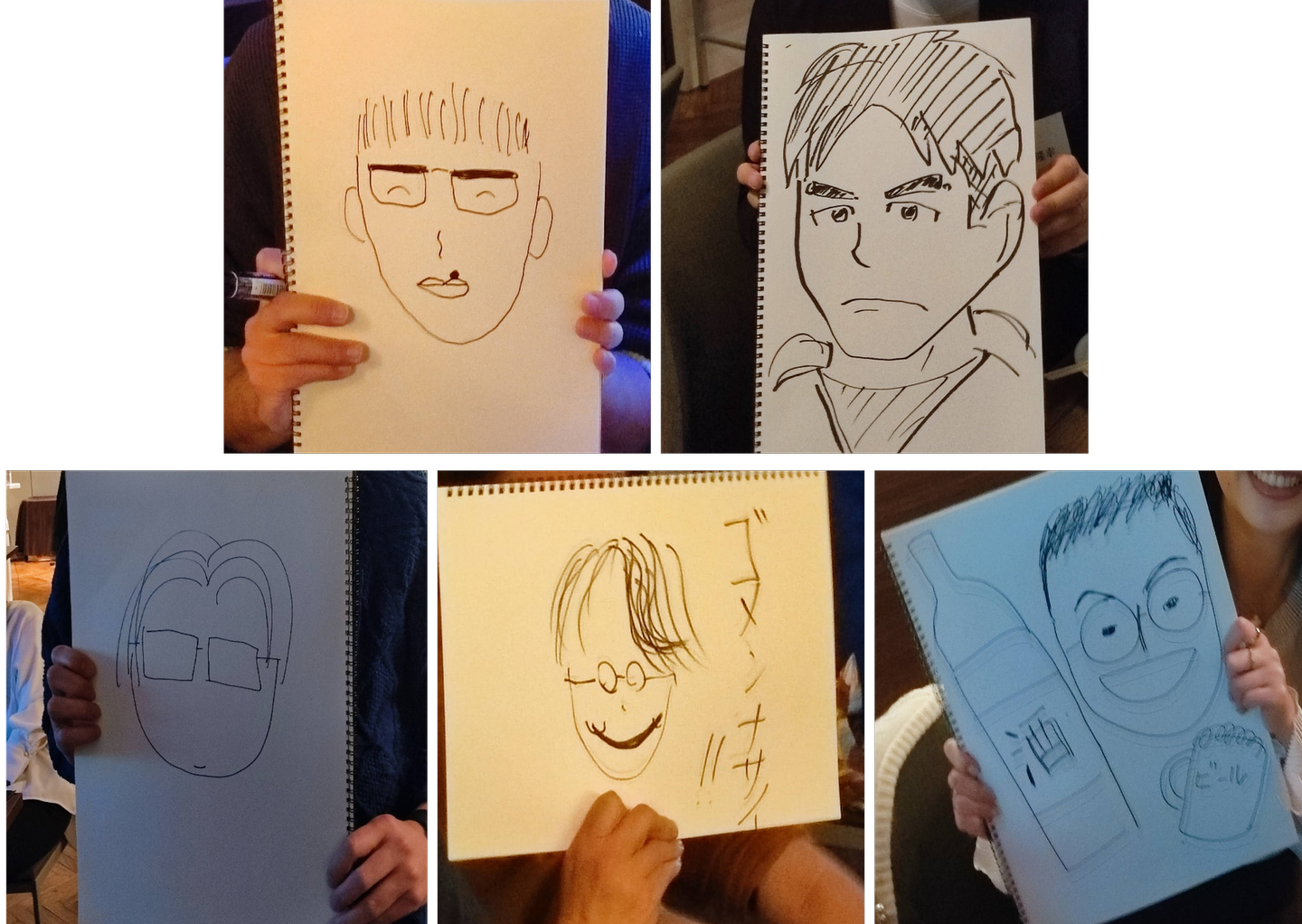 チーム対抗で豪華景品をかけた勝負で、各チームから絵に自信がある?ありそう?(笑)なメンバーが選出され、代表で似顔絵を書いていきます。