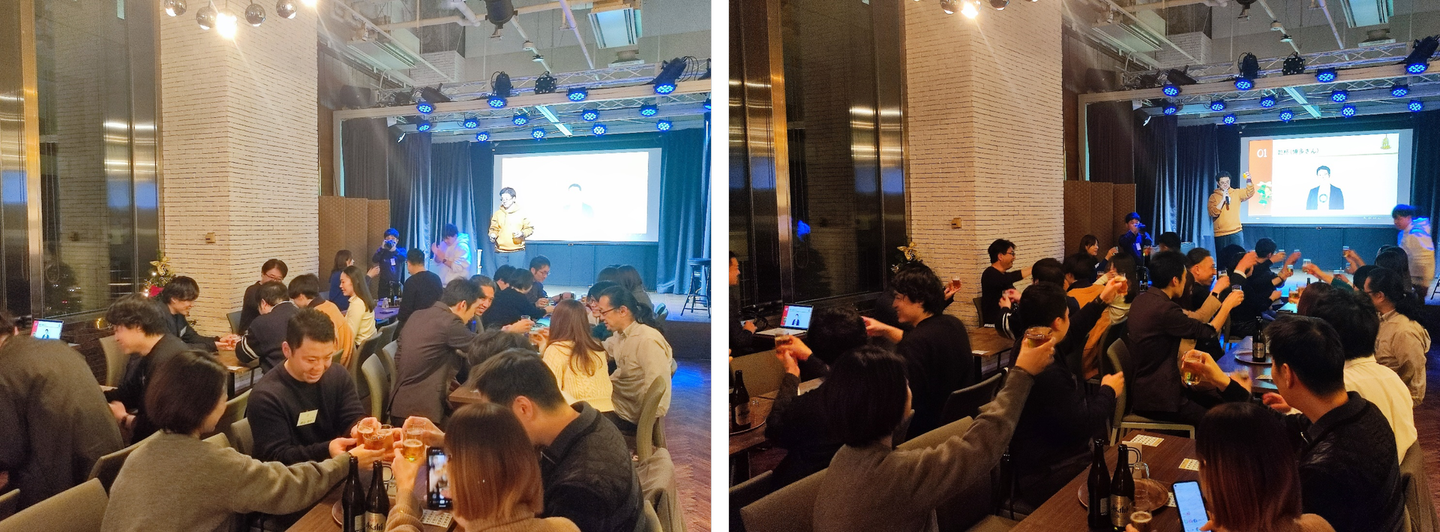 博多さんより、2024年のSORABITOの成長について、そして今年1年たくさんの挑戦をしたメンバーへの労いと感謝の言葉をもって乾杯🍻