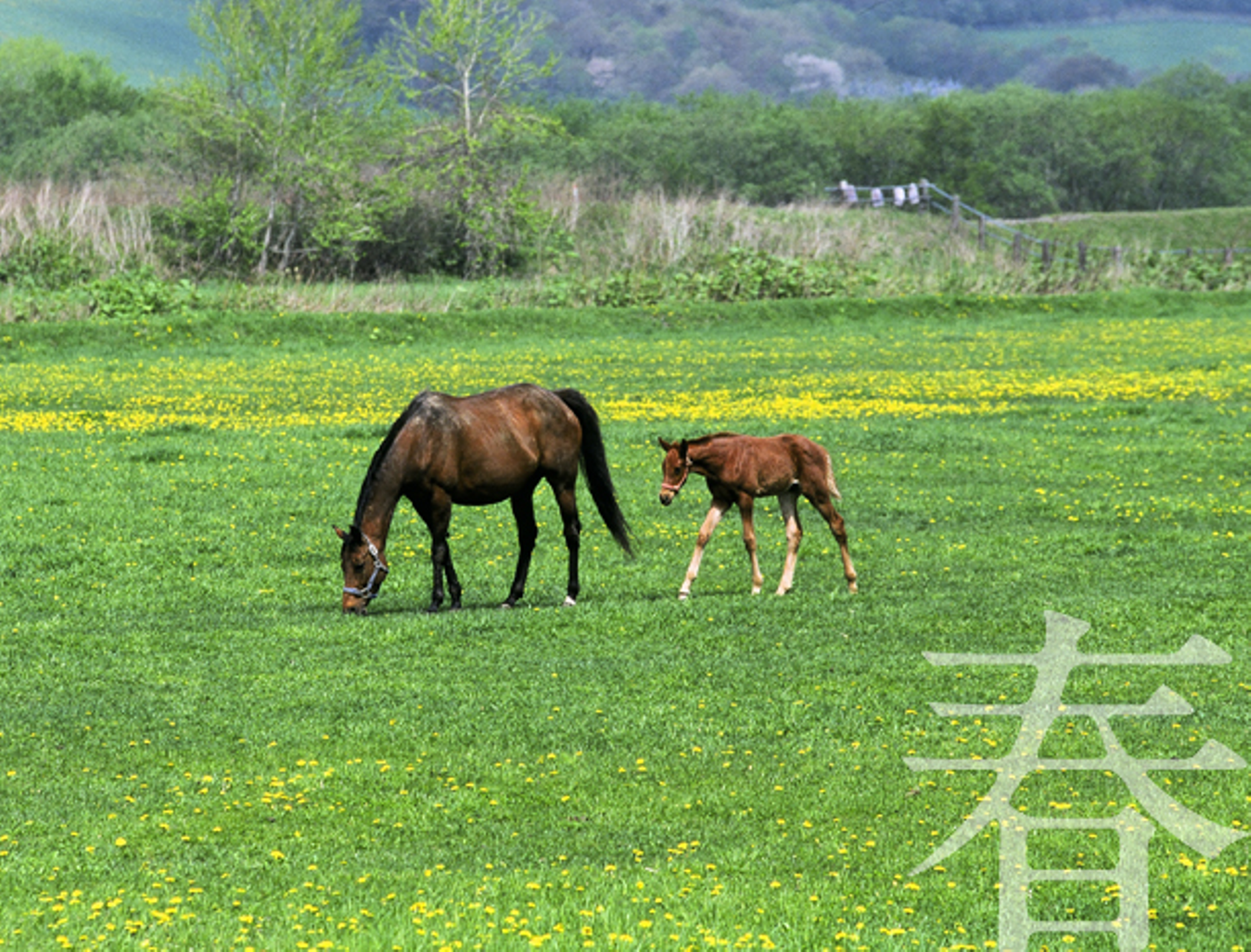 浦河の春は、桜が咲き乱れ、子馬たちが立ち上がる美しい季節。