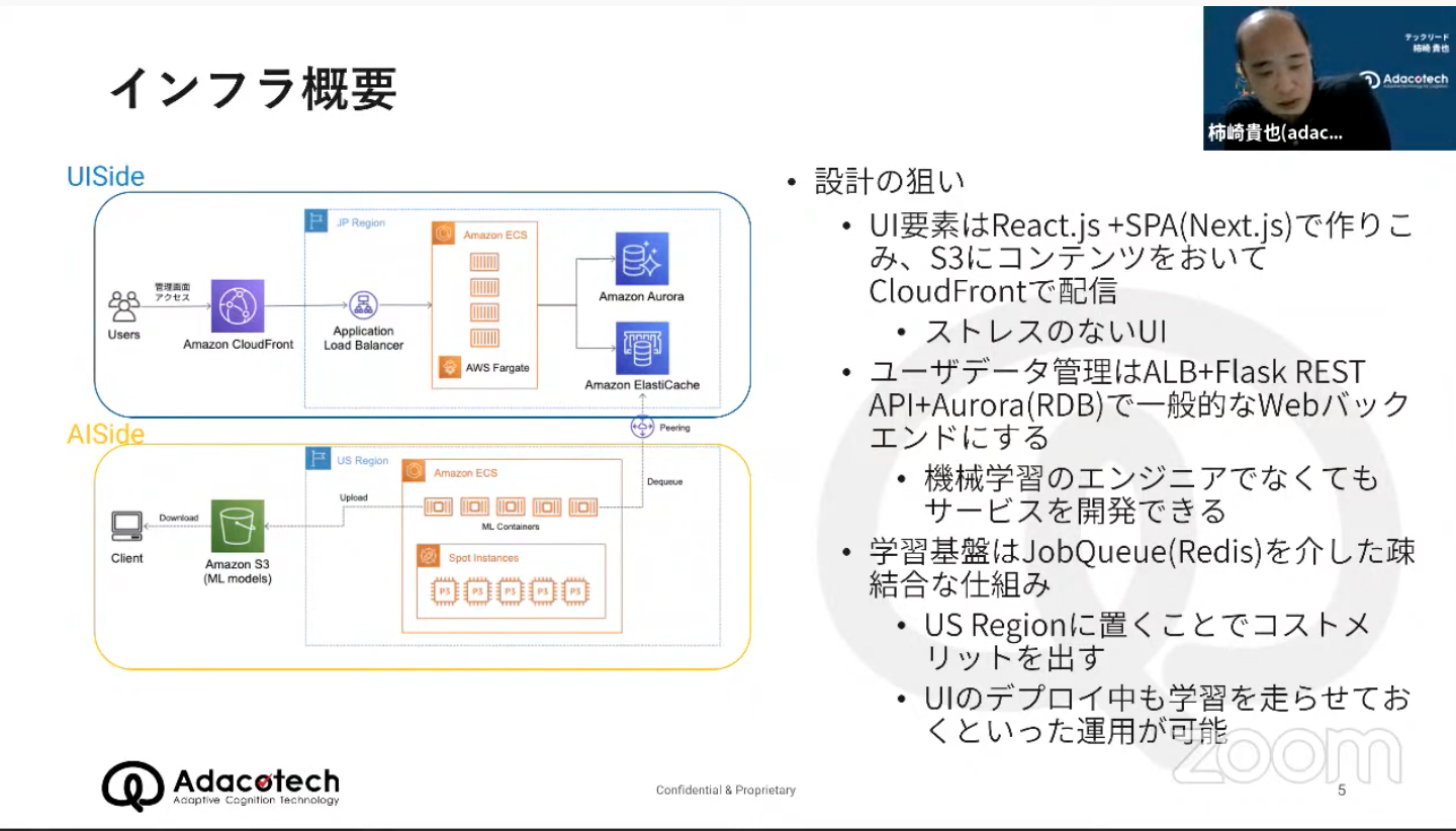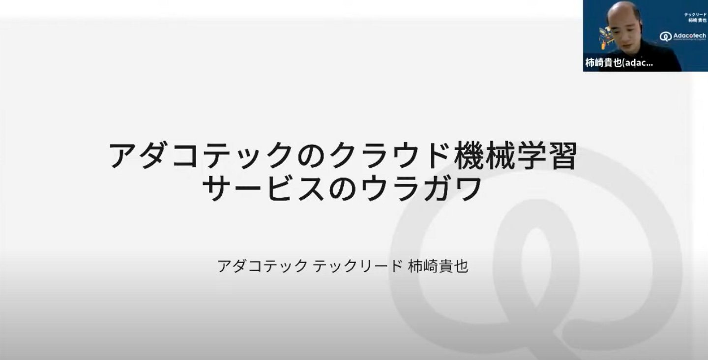 続いて柿崎より「アダコテックのクラウド機械学習サービスのウラガワ」というテーマで