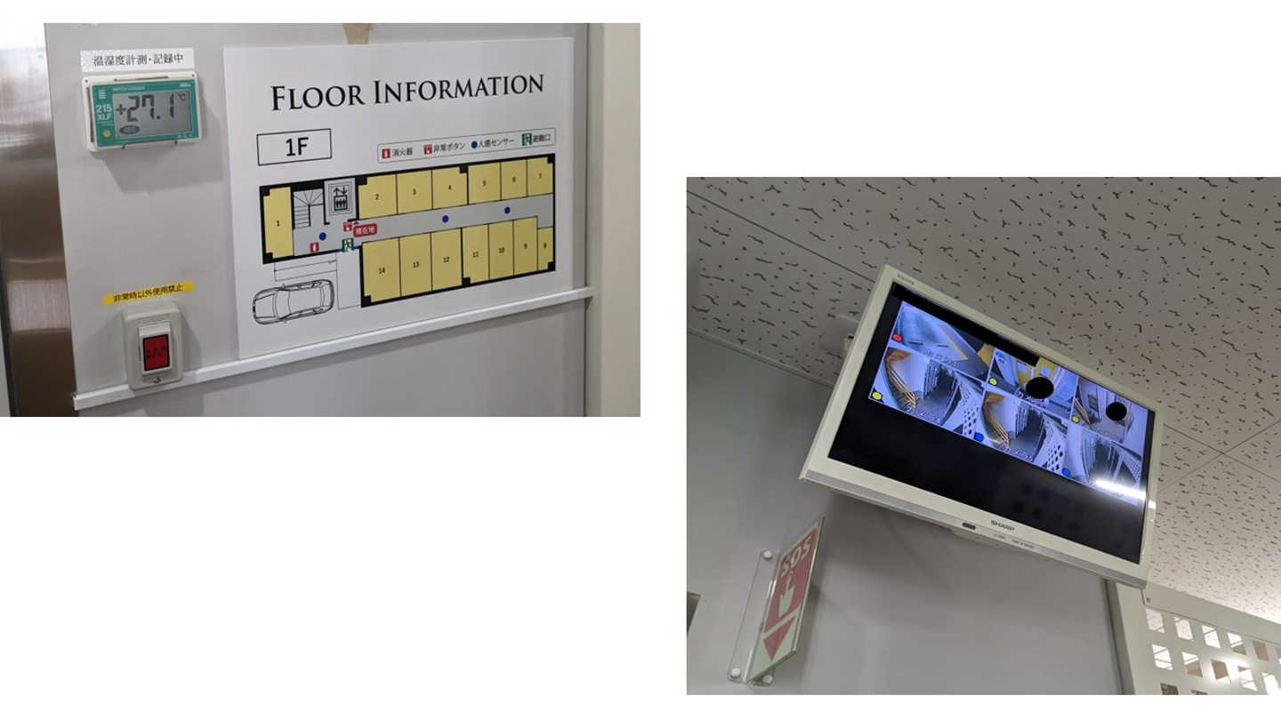 警備会社(ALSOK/SECOM)の警備システムによる常時警備をおこなっており、緊急時は警備隊員が出動します。