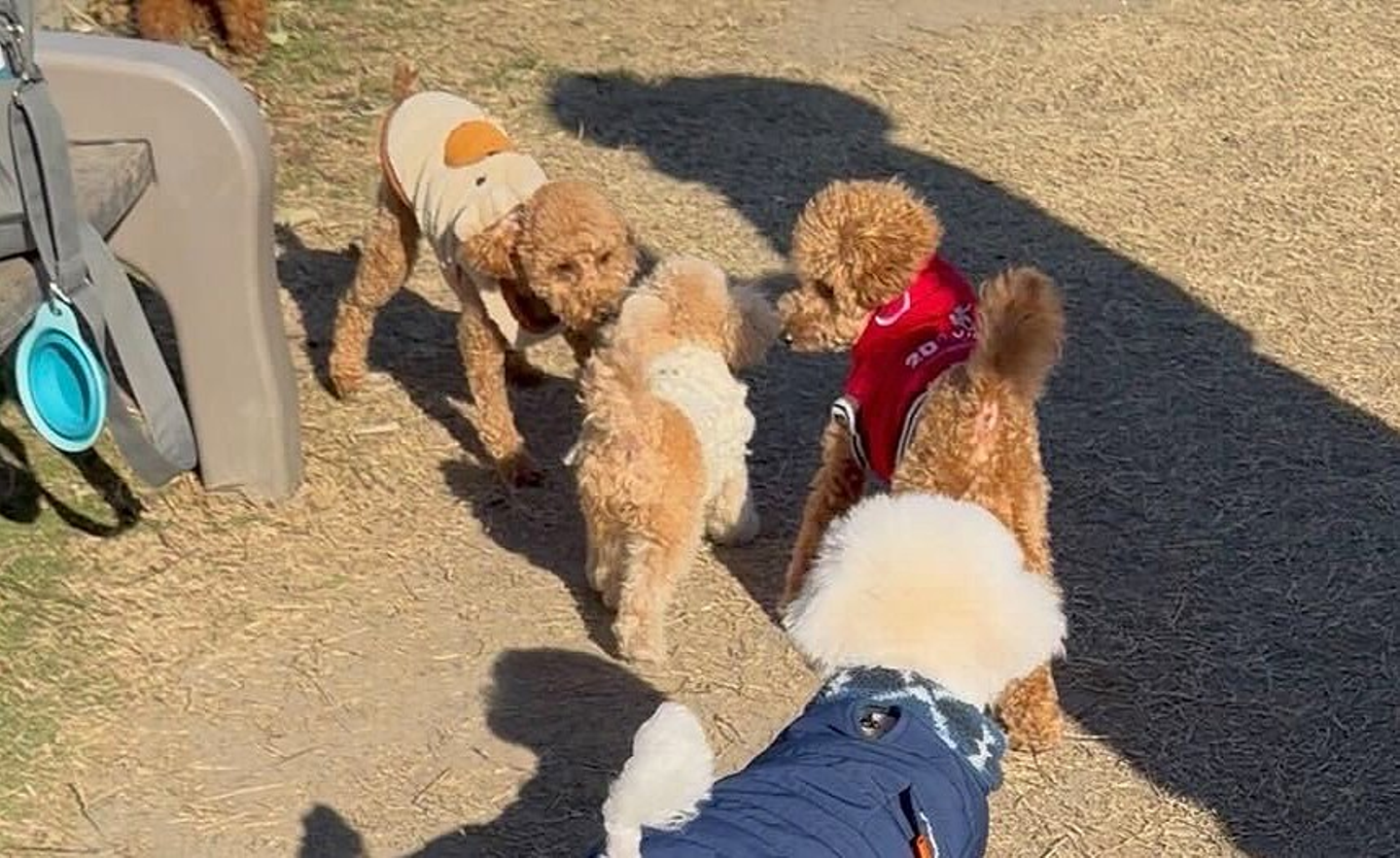 ② 飼い犬をドッグランにいっぱい連れて行く🐶