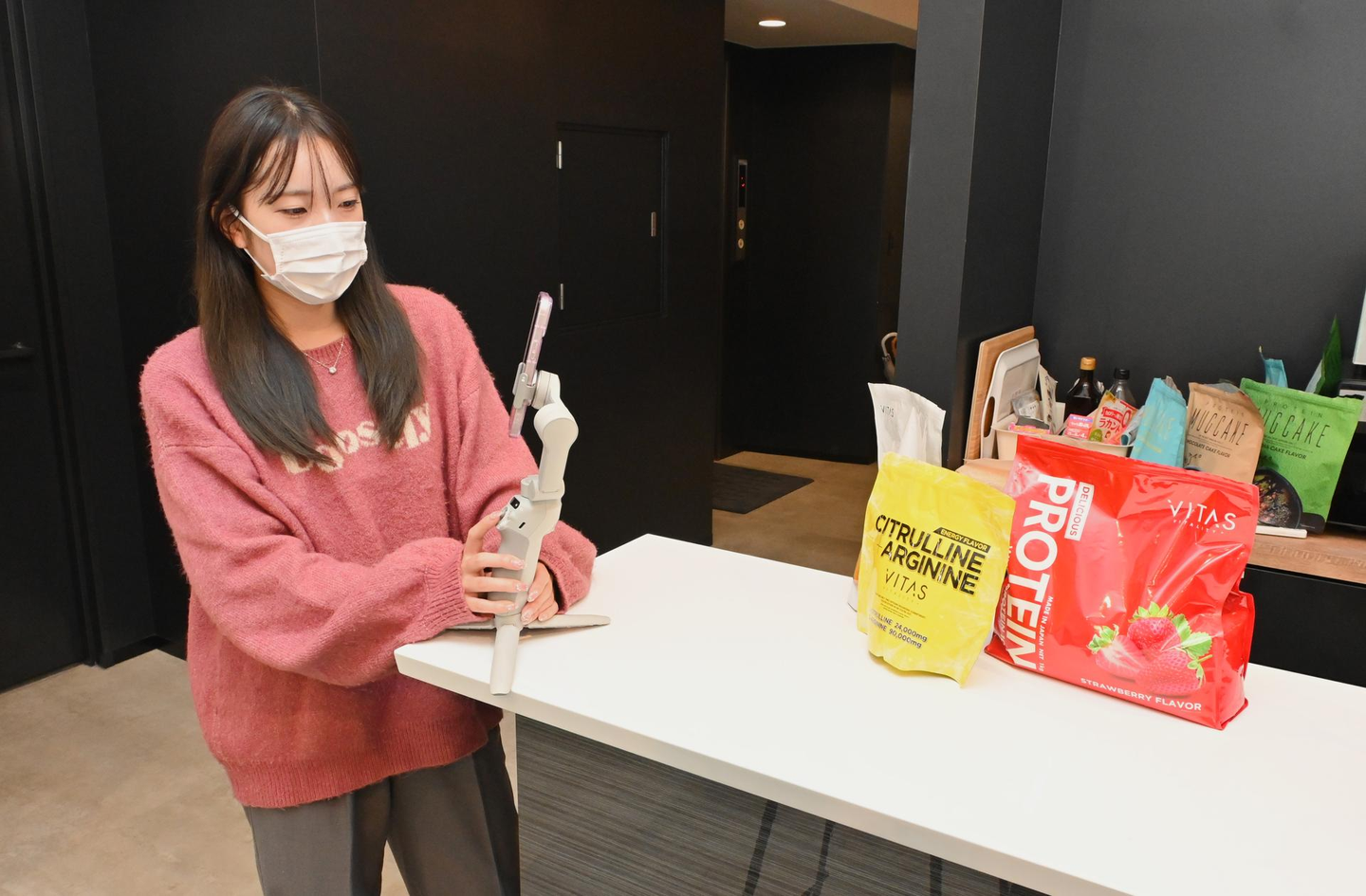 やまちゃんが担当している広報用 TikTok アカウントに使うため、商品の撮影をします。