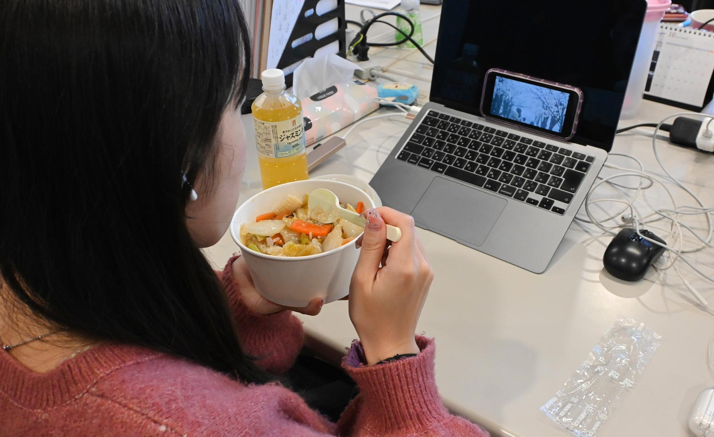 昼食は基本的に近くのコンビニで買うことが多いみたいです🍱この日は自分のデスクで、韓国ドラマを観ながらご飯を食べていました。