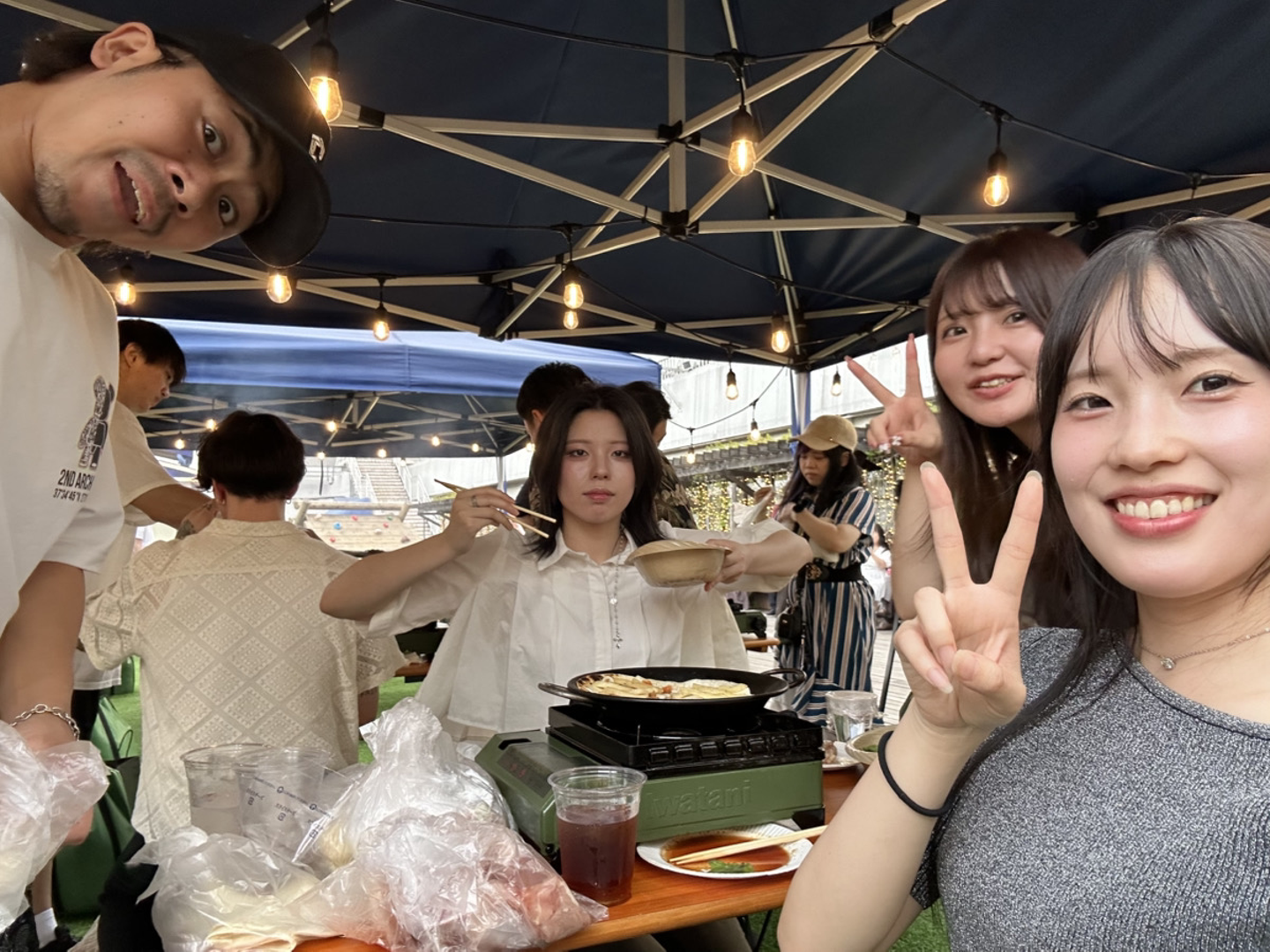 お肉のほかにもフライドポテトや枝豆があったほか、各テーブルで焼きそばやトルティーヤを作ることができました!