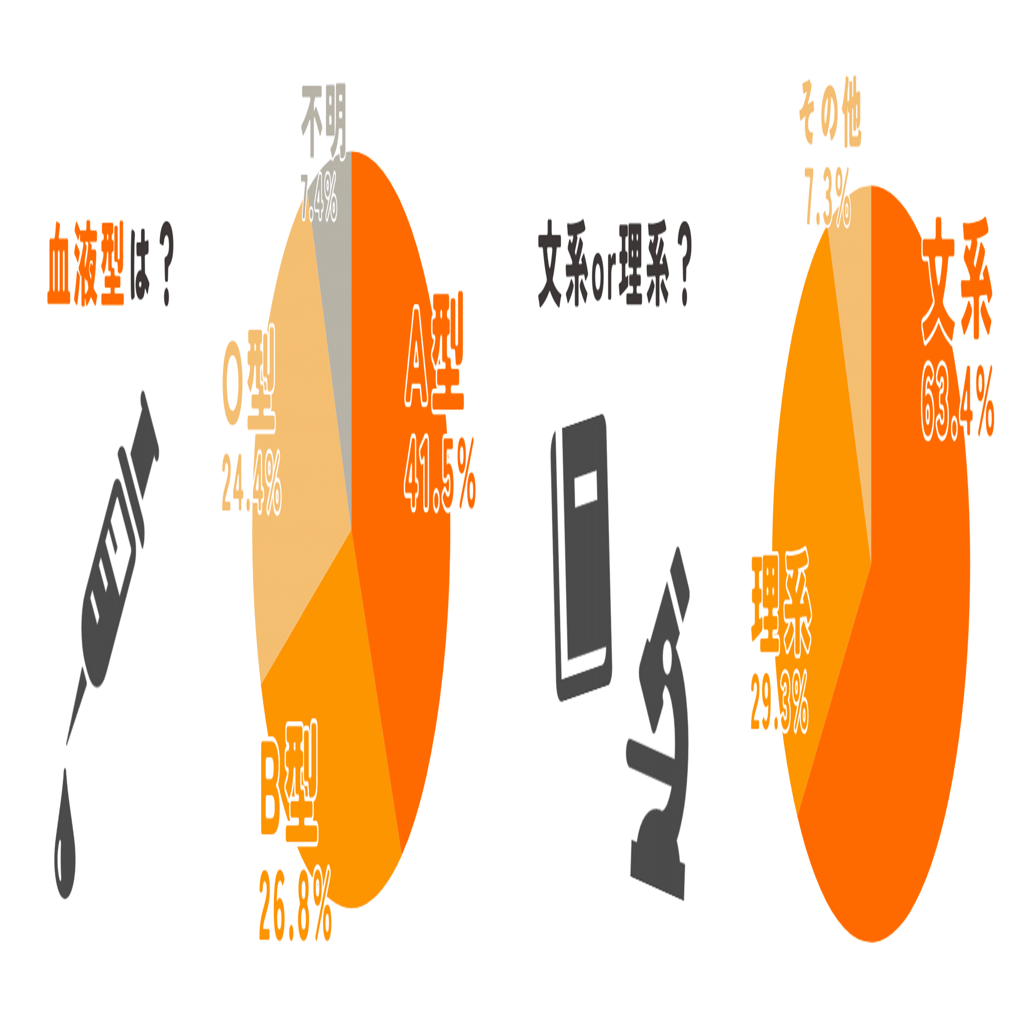血液型分布は日本の平均よりもB型の比率が高いことが分かりました(かくいう私もB型です)。