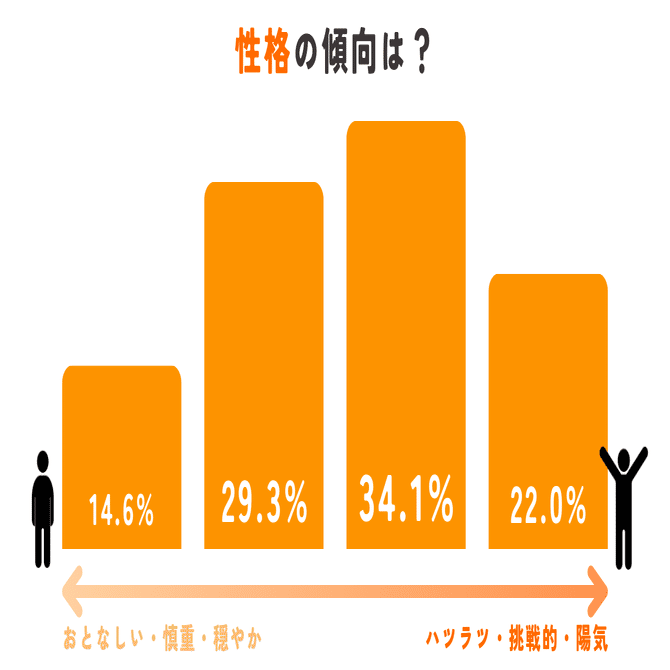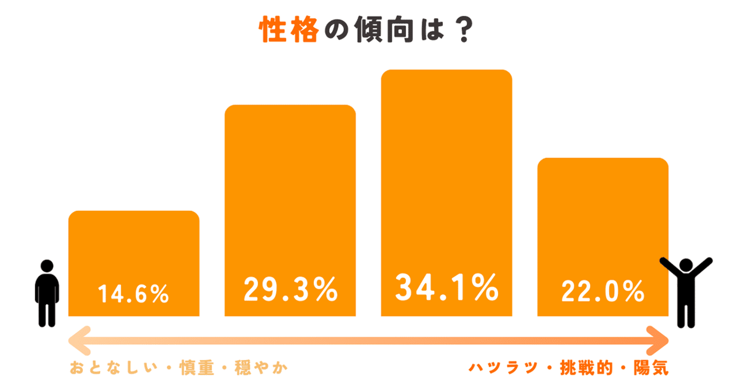 そして性格の傾向ですが、STANDAGEメンバーの半数以上が「自分はどちらかといえばハツラツとしていて、明るい方だ」と認識しているという結果が出ました。