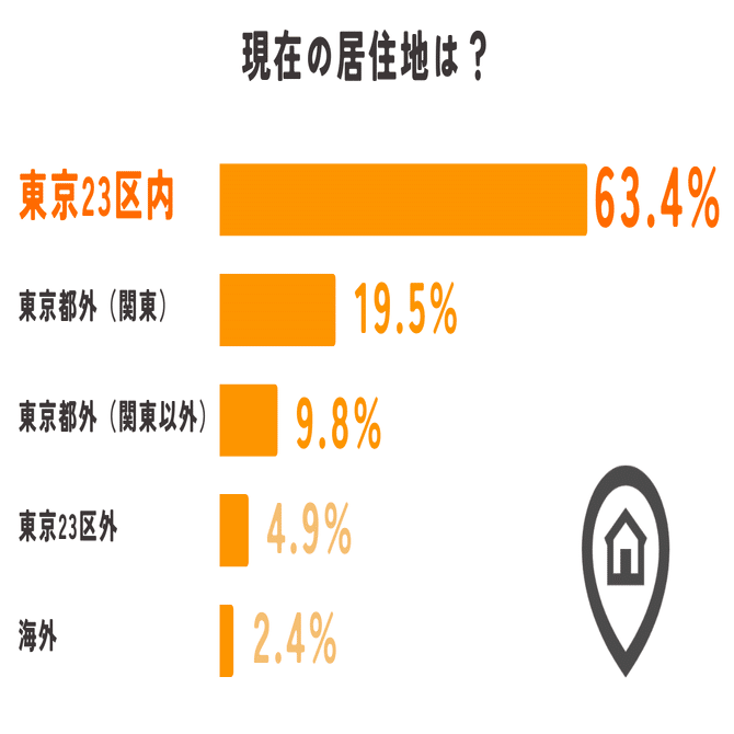 また、現在ほとんどのメンバーが東京本社に勤務していることもあり、東京23区内に住んでいる人が半数以上でした。