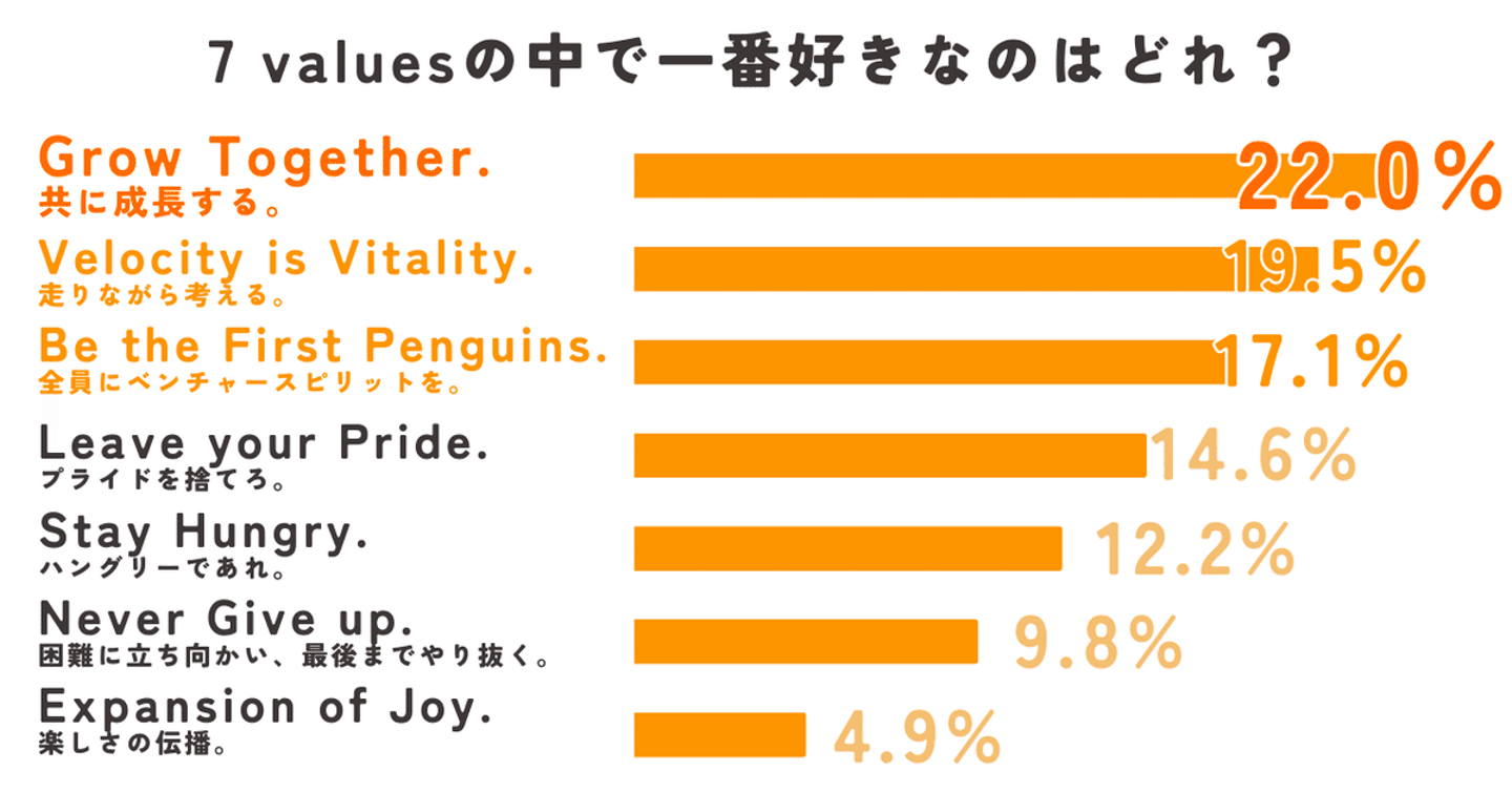 7つの指針のうち、最もメンバーから人気が高かったのは「Grow Together. 共に成長する。」でした。