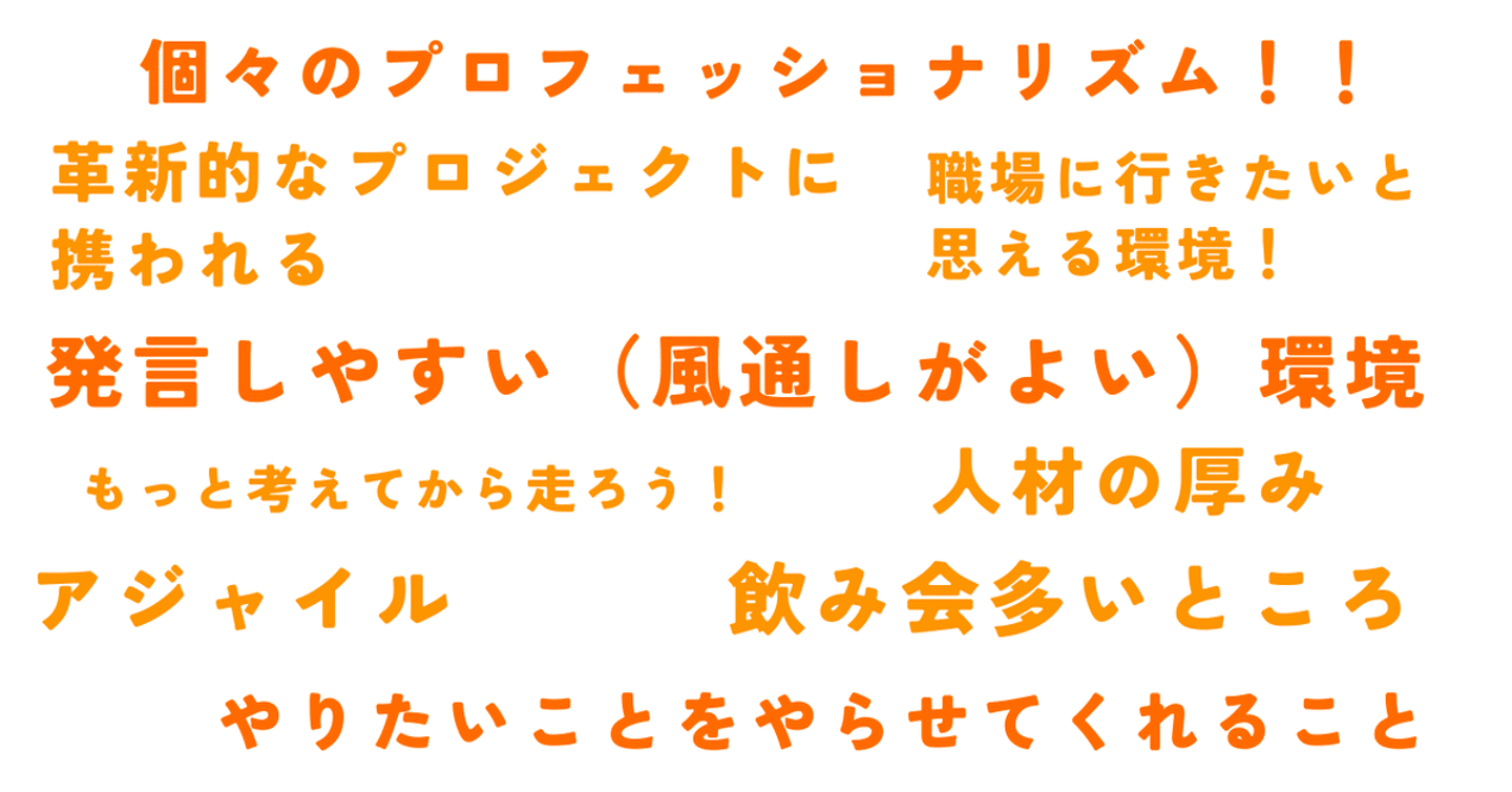 最後に、STANDAGE社員たちに「会社の良いところ、好きなところを一言で教えてください」という質問を投げかけてみました。