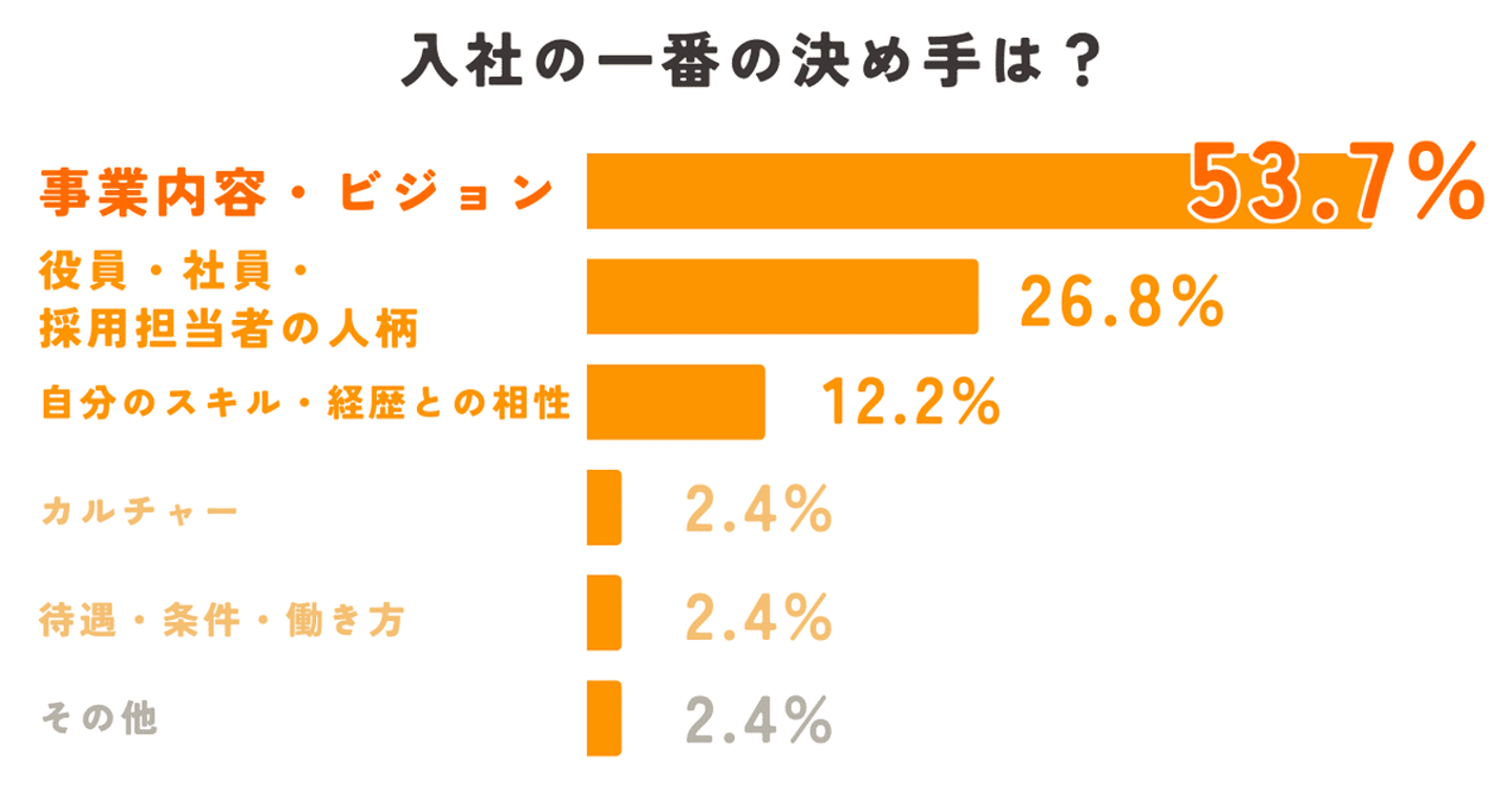 入社の決め手は「事業内容・ビジョン」が半数以上で圧倒的トップに。