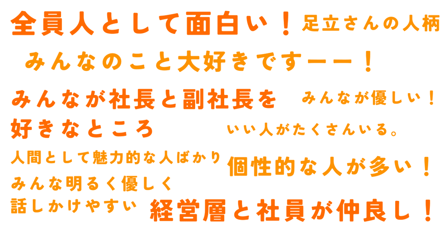 確かに、入社したばかりのメンバーに話を聞くと「とにかく足立さん(代表)の人柄に惚れ込んだ」「採用過程で会う社員がみんな感じのいい人ばかりだった」とよく言ってもらえます。