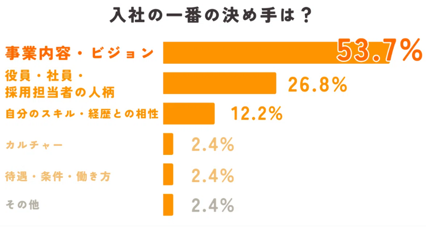 入社の決め手は「事業内容・ビジョン」が半数以上で圧倒的トップに。