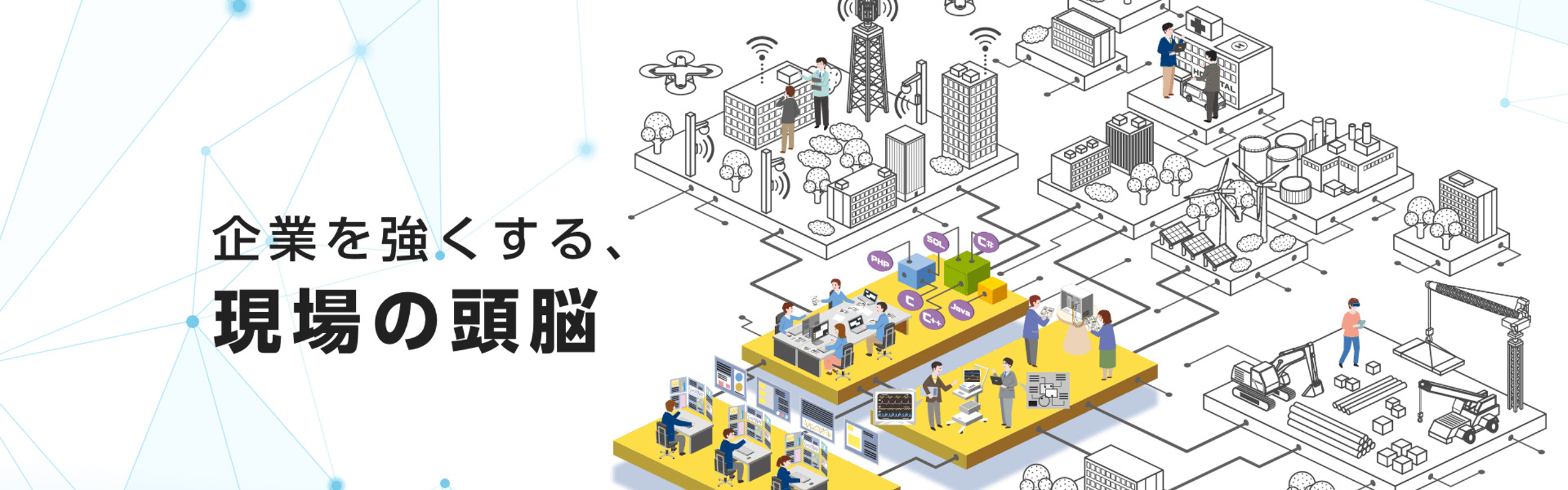 自社製品を中心とするソリューション事業の人材募集を行っています。 当社はアウトソーシング企業として、無線設備や化学プラント、医療機器など多様な分野でエンジニアと共に導入・運用・保守に携わってきました。深刻化する人材不足の解決に向けて当社は、デジタル技術によって「人と設備の付加価値と生産性を高める」ソリューション事業を推進中です。アウトソーシング企業としての業界横断的な繋がりを当社の強みとし、ゲーミング技術を建設DXにかけ合わせた重機操作アプリやIoTによる産業設備の遠隔監視など、新たな挑戦を続けています。