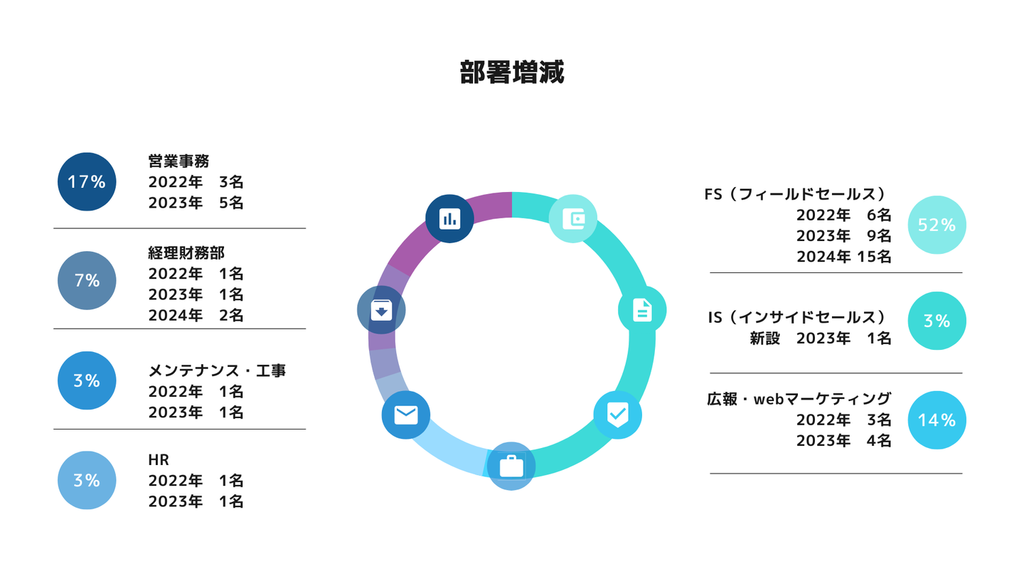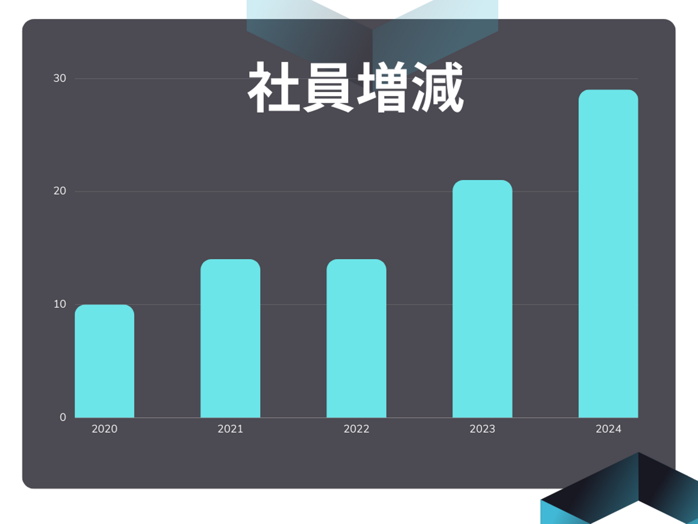 下記の表はトリニティーの社員数増減ですが、来年は30名を超える組織になる予定です。