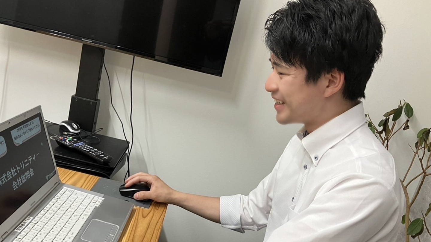 なぜトリニティーでは新入社員が説明会を行うのか。それは、新入社員が自主的に行うことでプレゼン力、トーク力の向上や、会社についての早期理解が望めるからです。